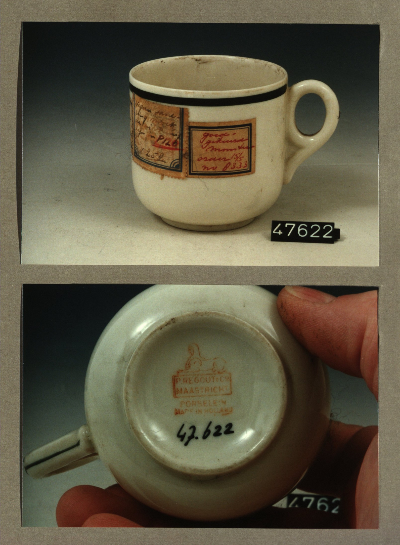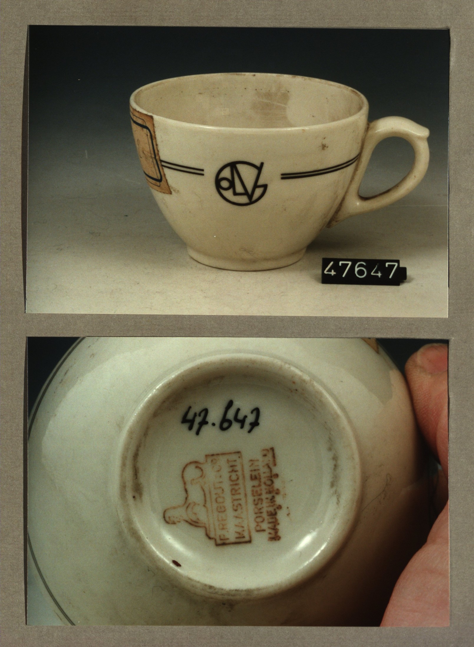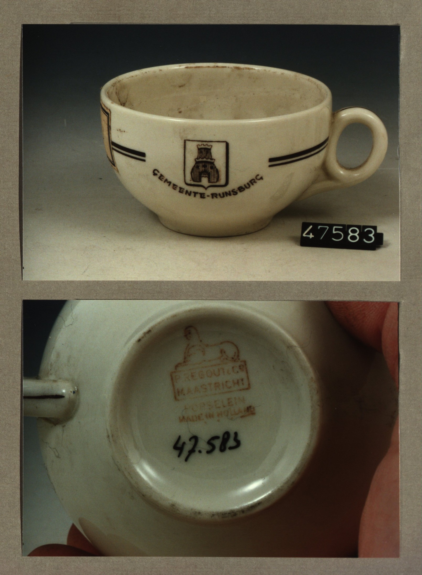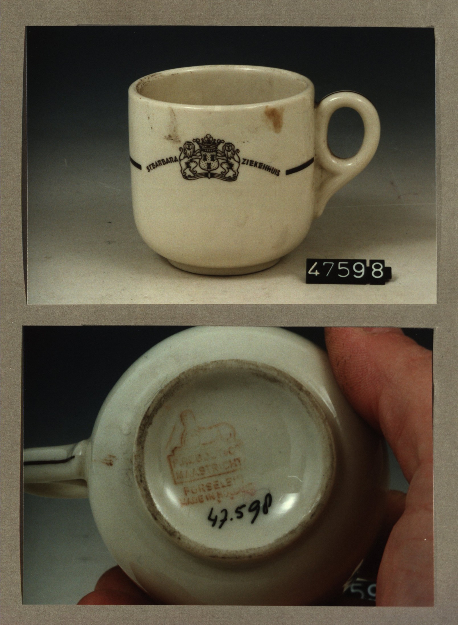 Kop met opschrift, model F met decor St' Barbara zie...