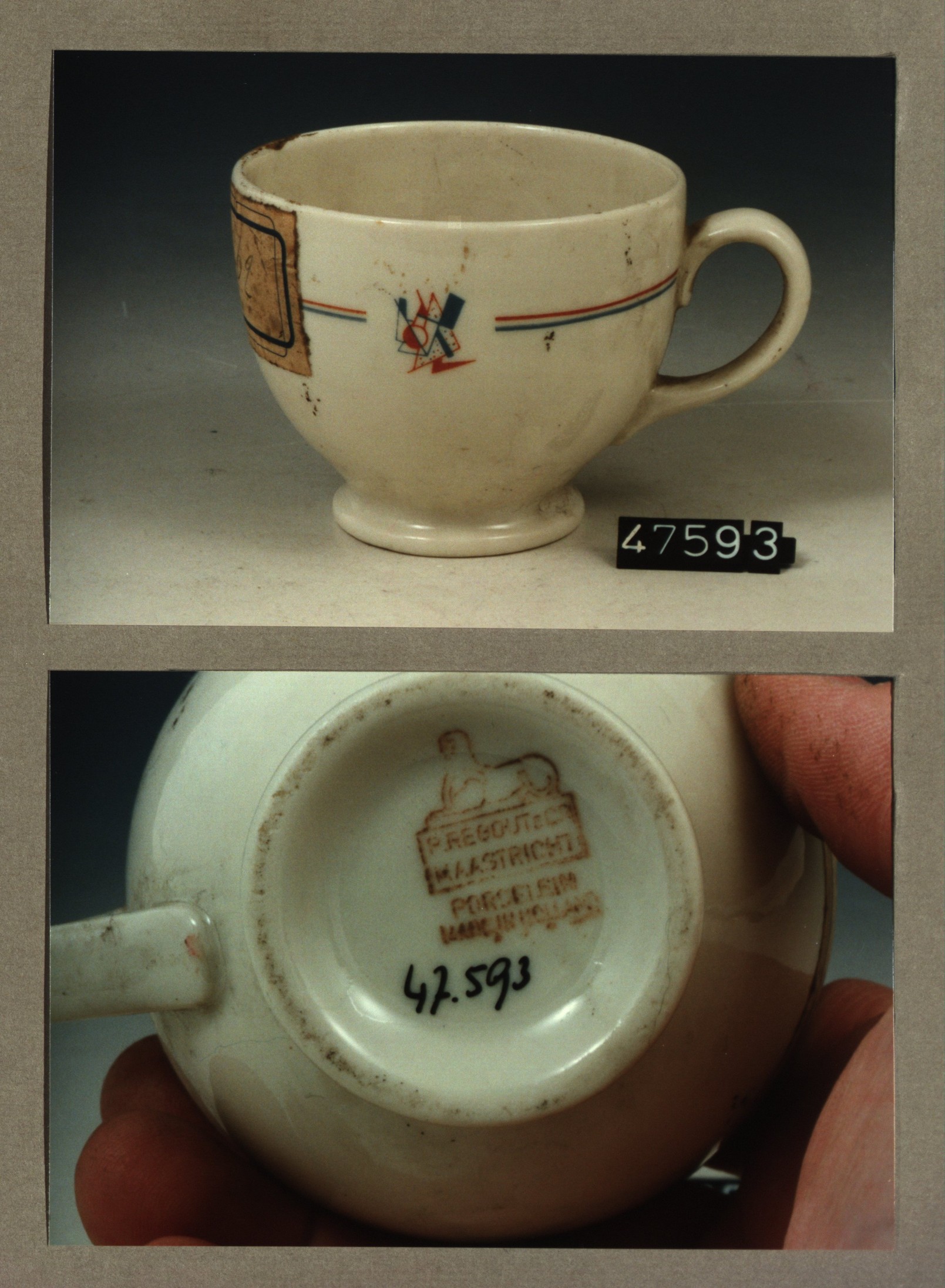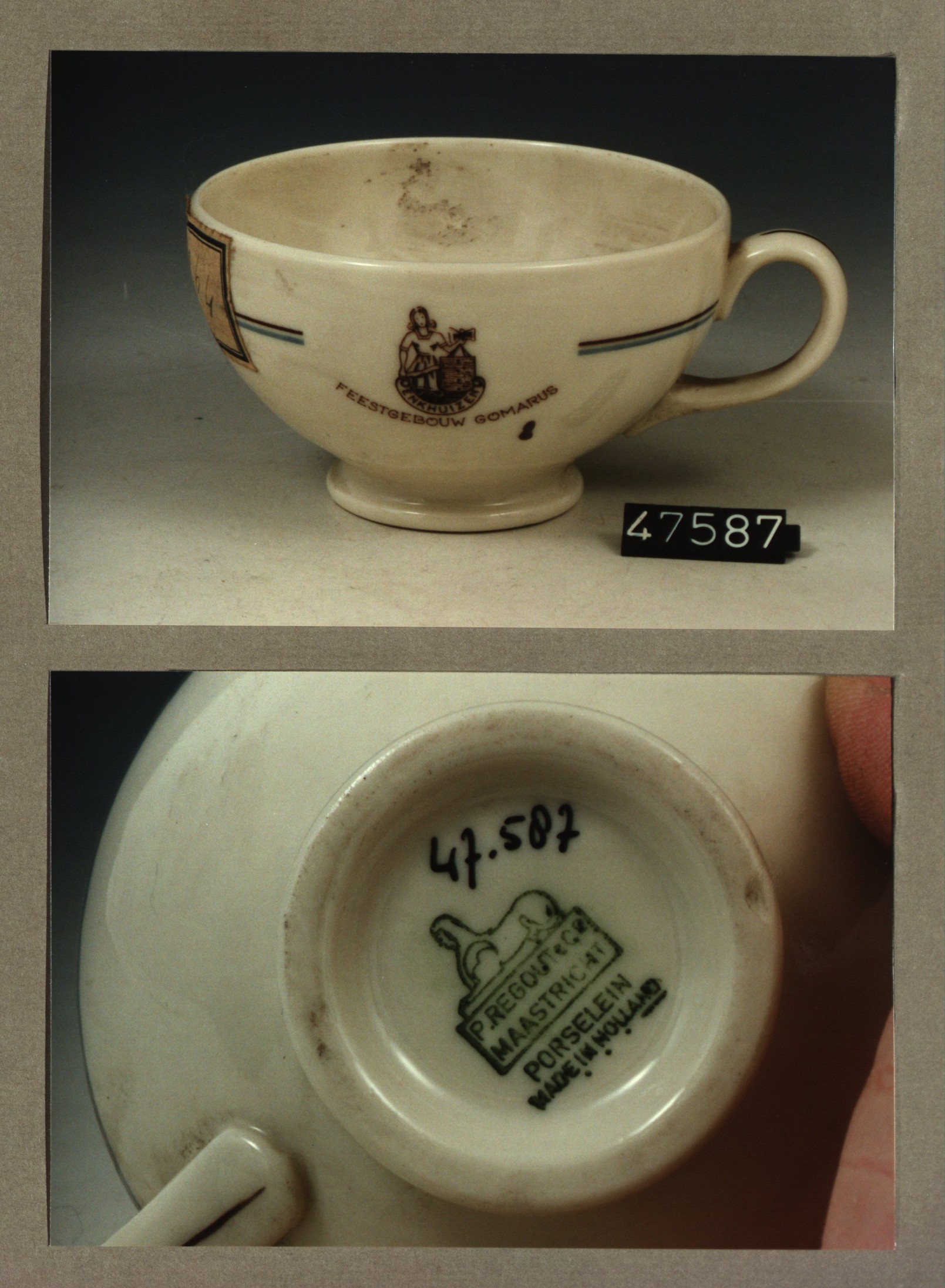 Kop met opschrift, model SMN met decor Aannemingsbed...