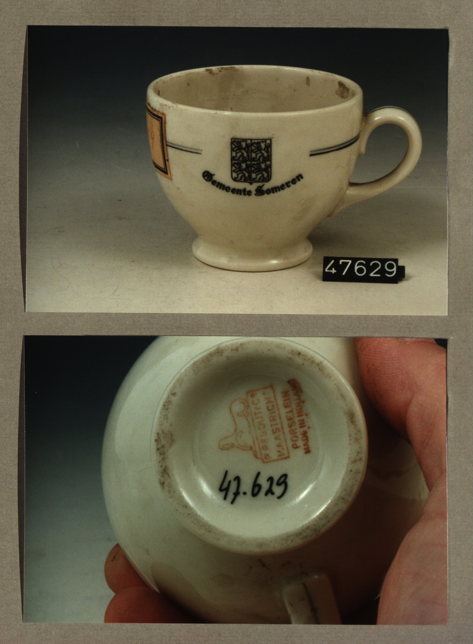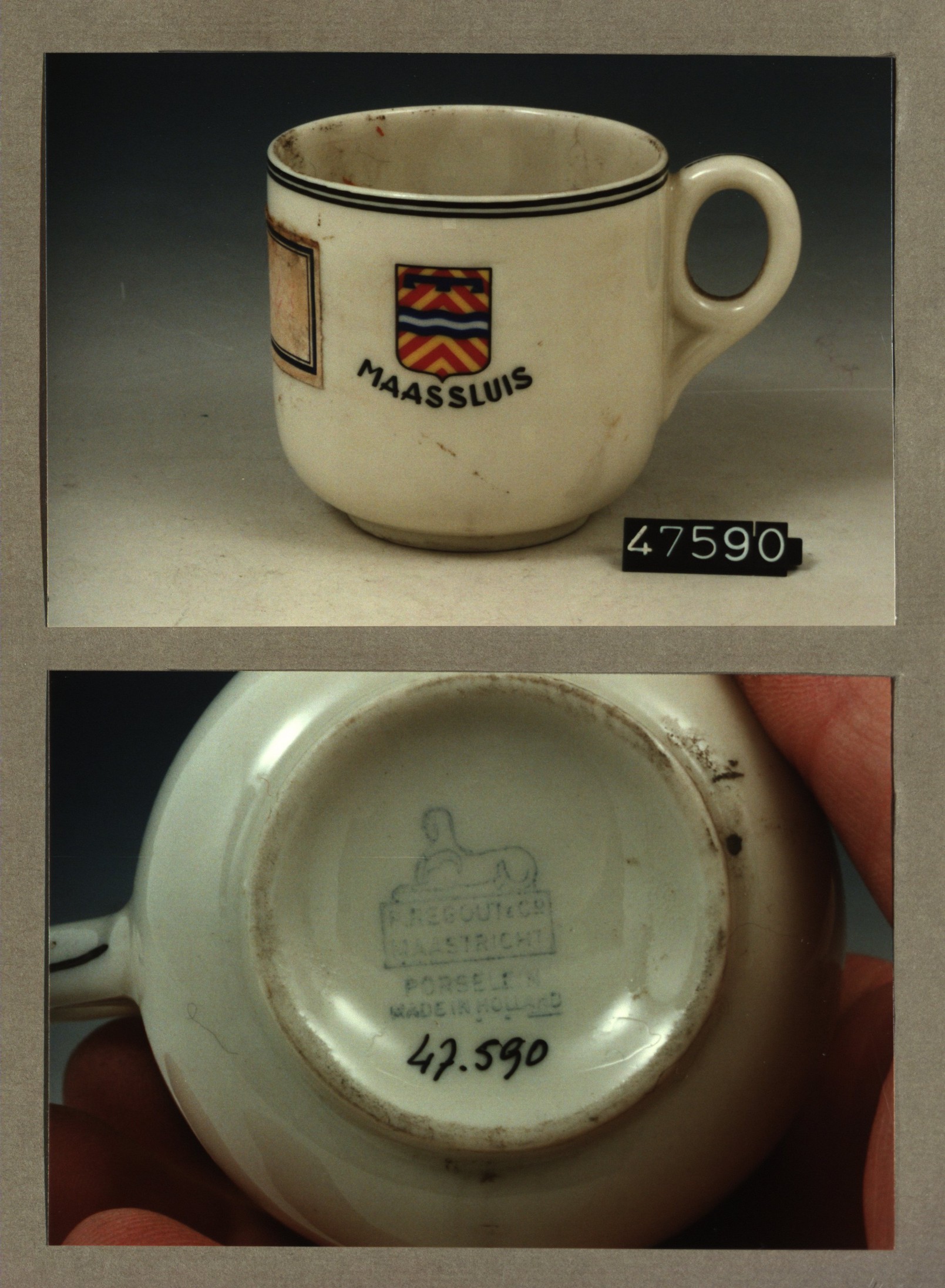 Kop met opschrift, model F met decor Gemeente Maassluis