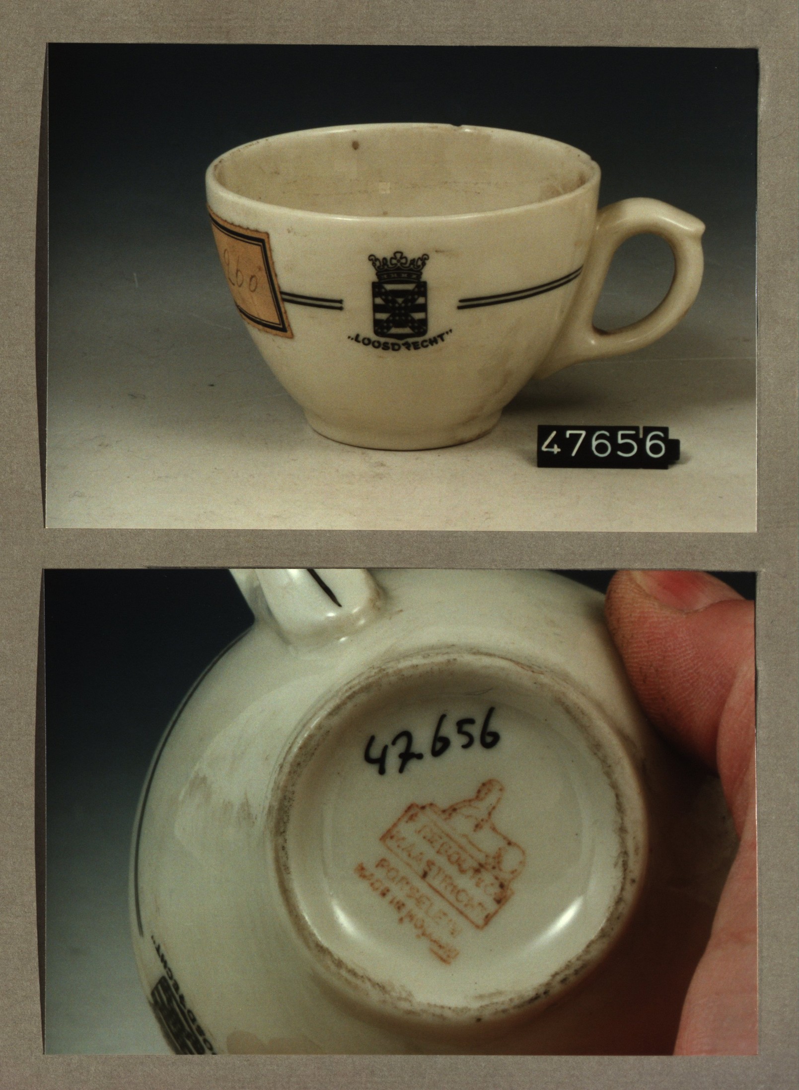 Kop met opschrift, model SMN met decor Gemeente Loos...