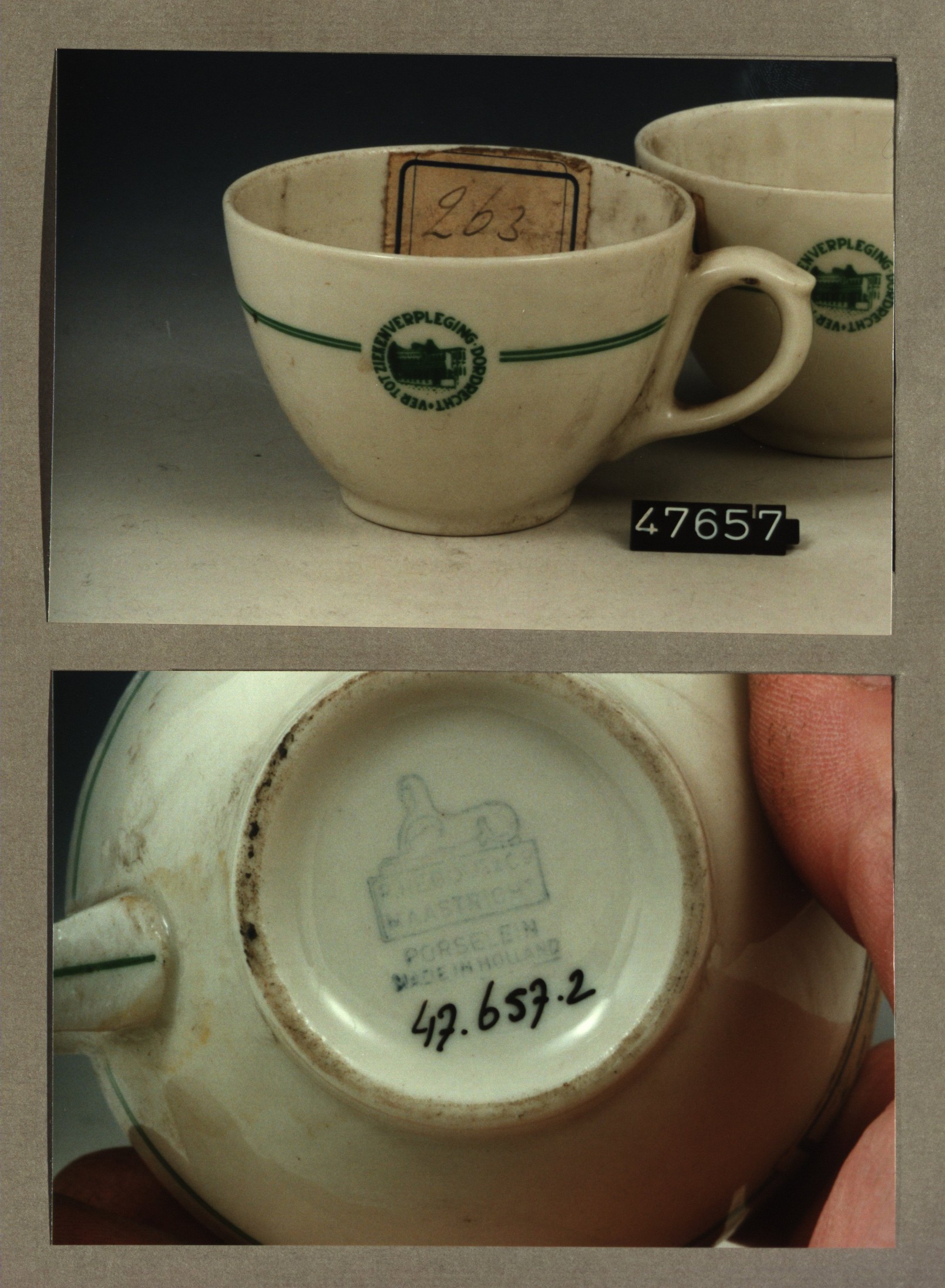 Kop met opschrift, model SMN met decor Ver.tot zieke...