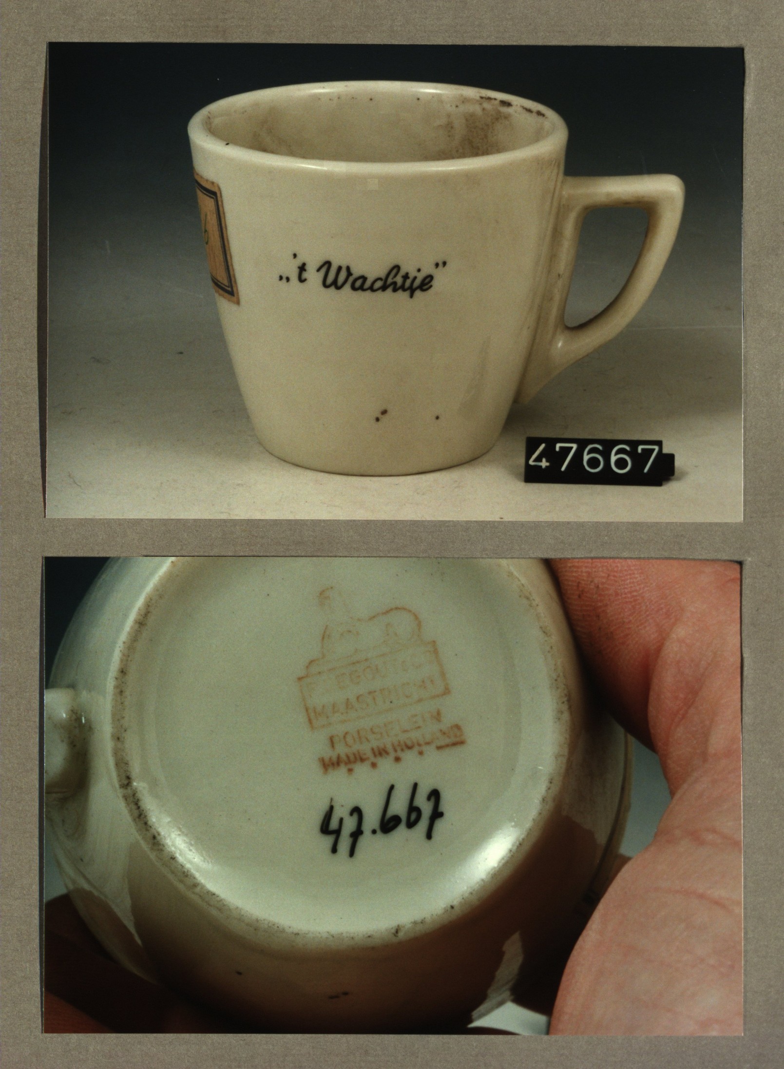 Kop met opschrift, model P2 met decor t' Wachtje