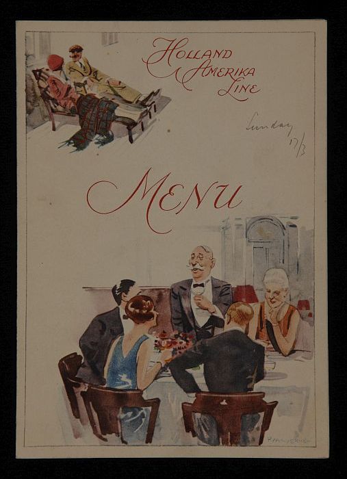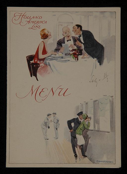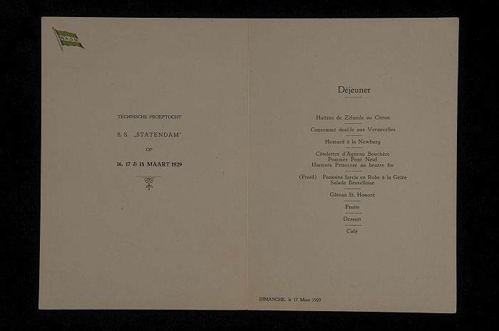 Menukaart SS Statendam, Holland Amerika Lijn, met aq...