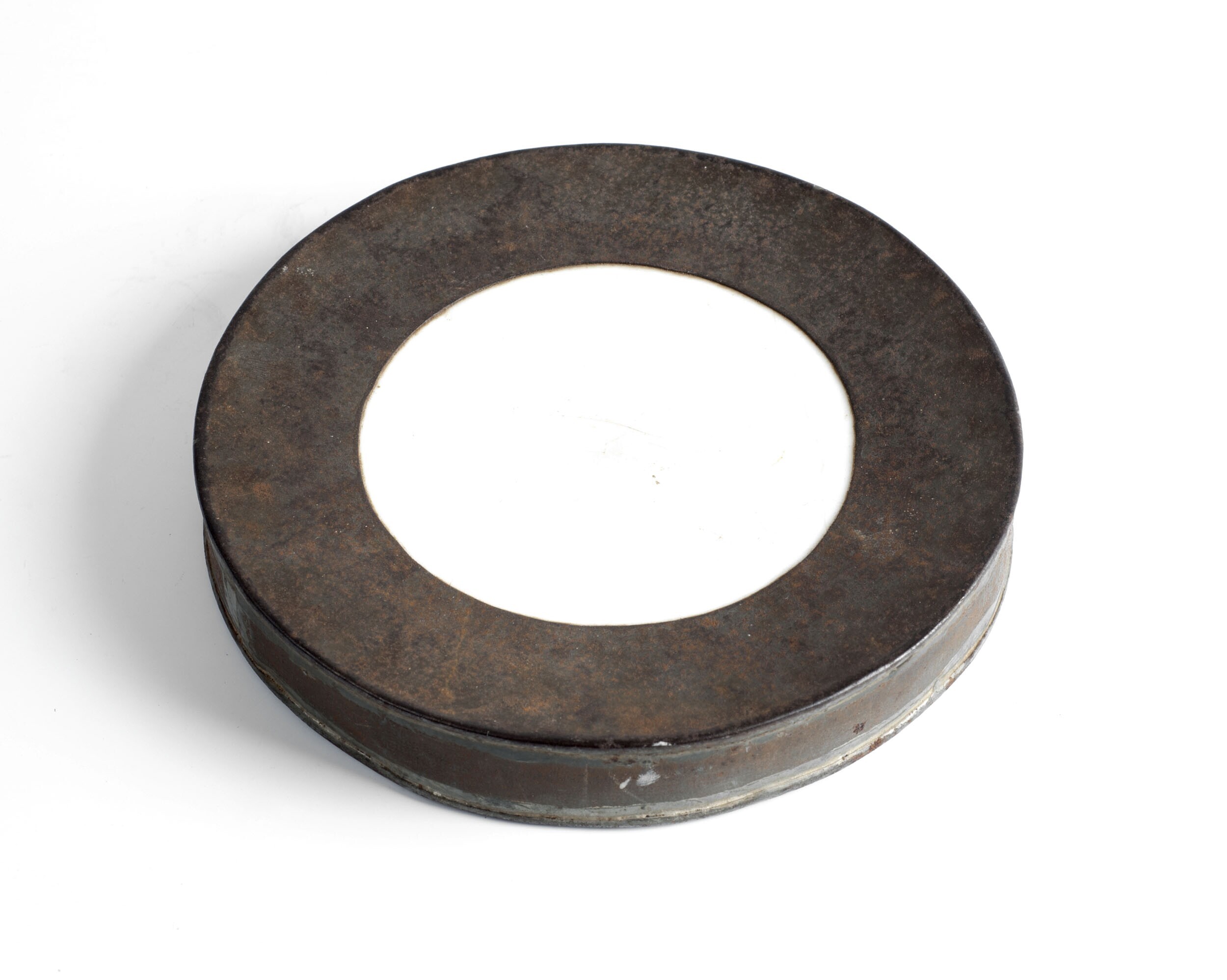 Rond plateau, gemaakt van porselein en blik, onderde...