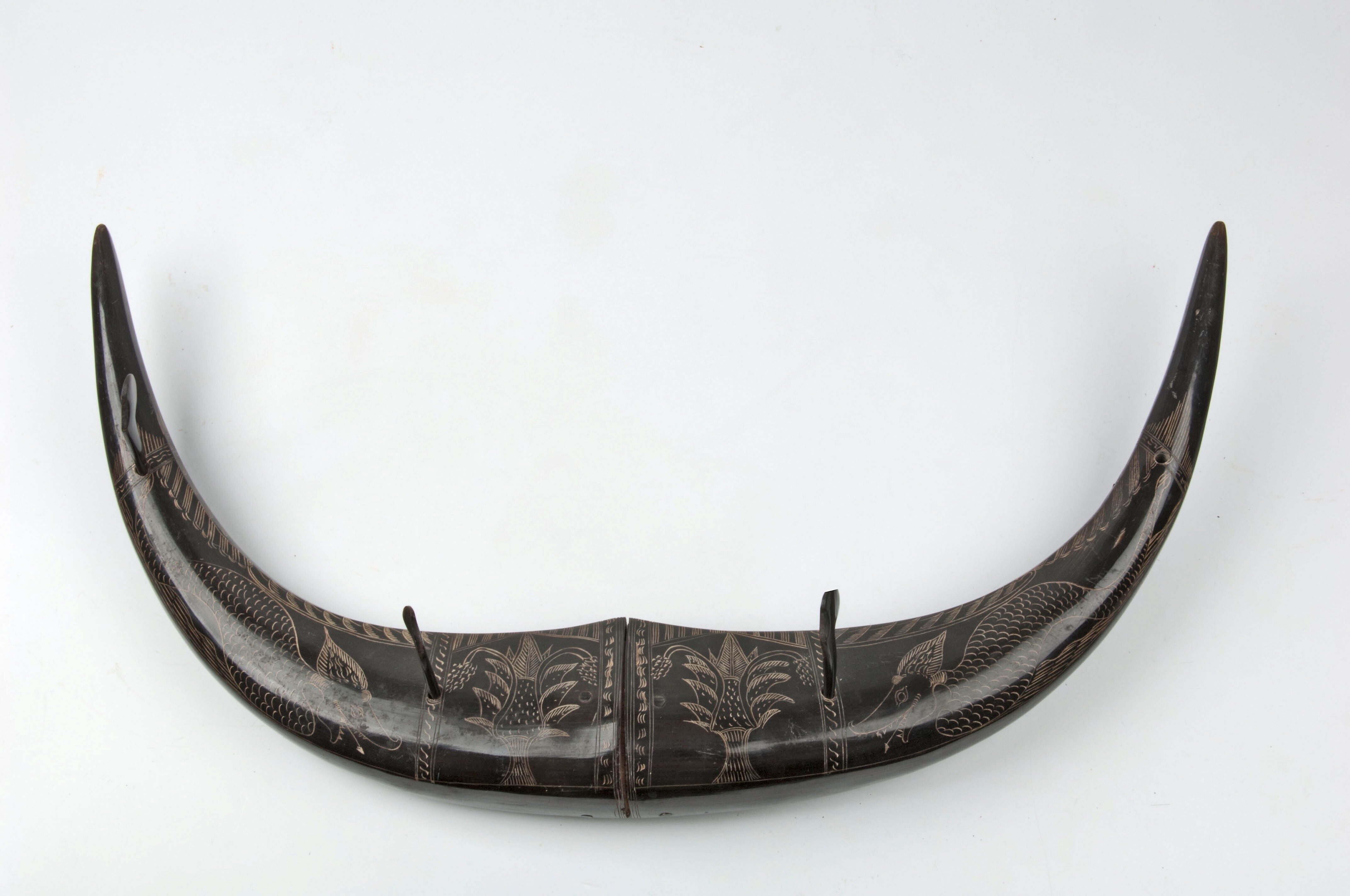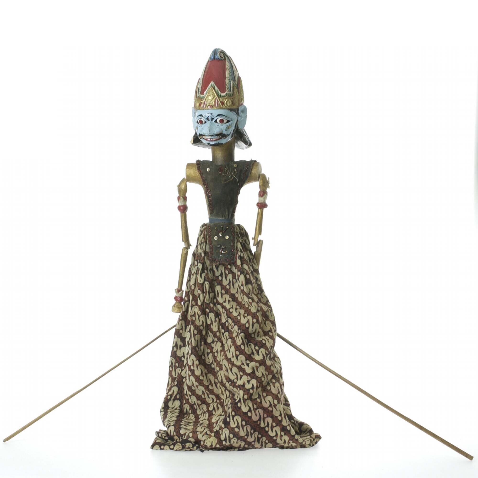 Metalen haak met een zilveren wayangfiguur, voor het...
