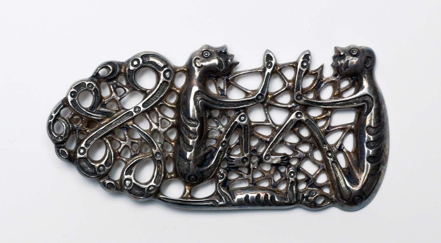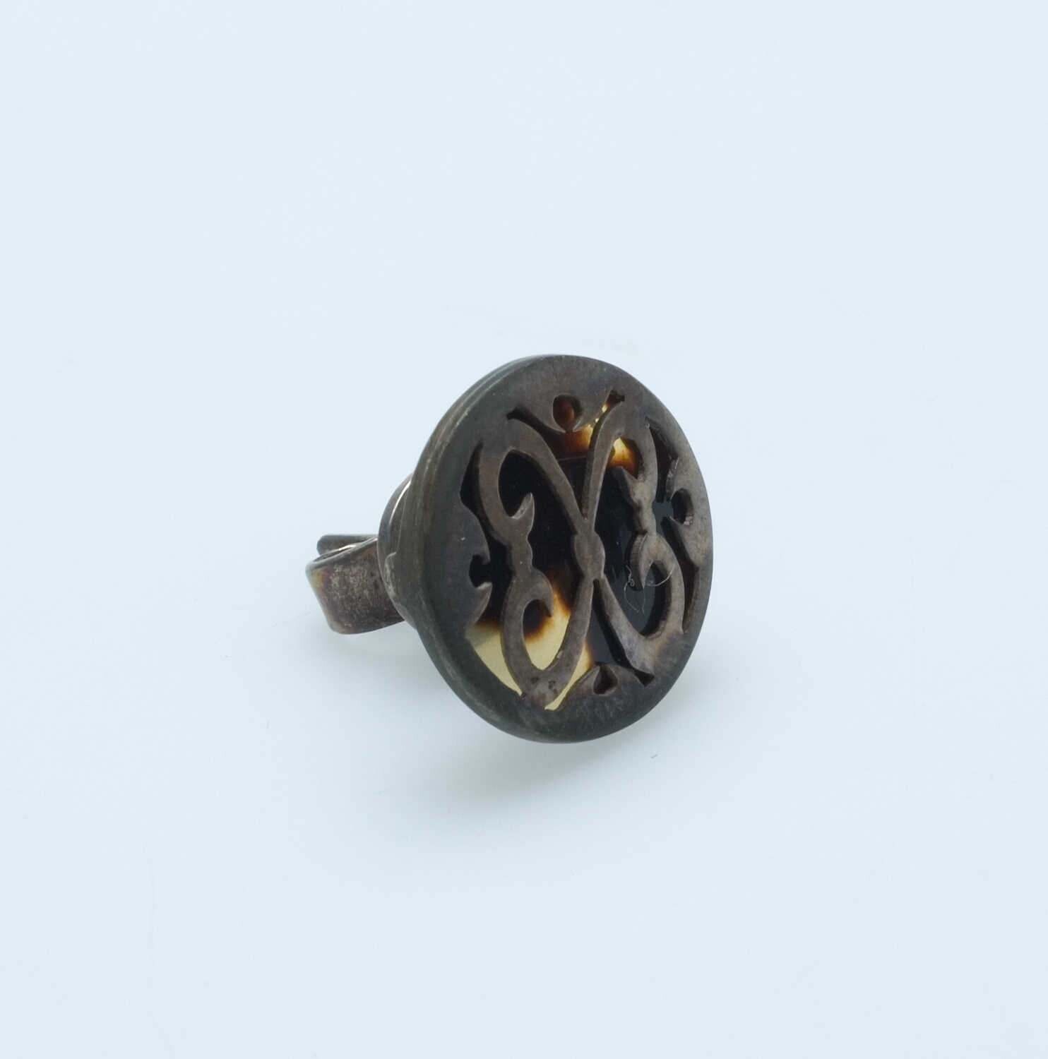 Ring met draakfiguren, gemaakt van schildpad en zilver