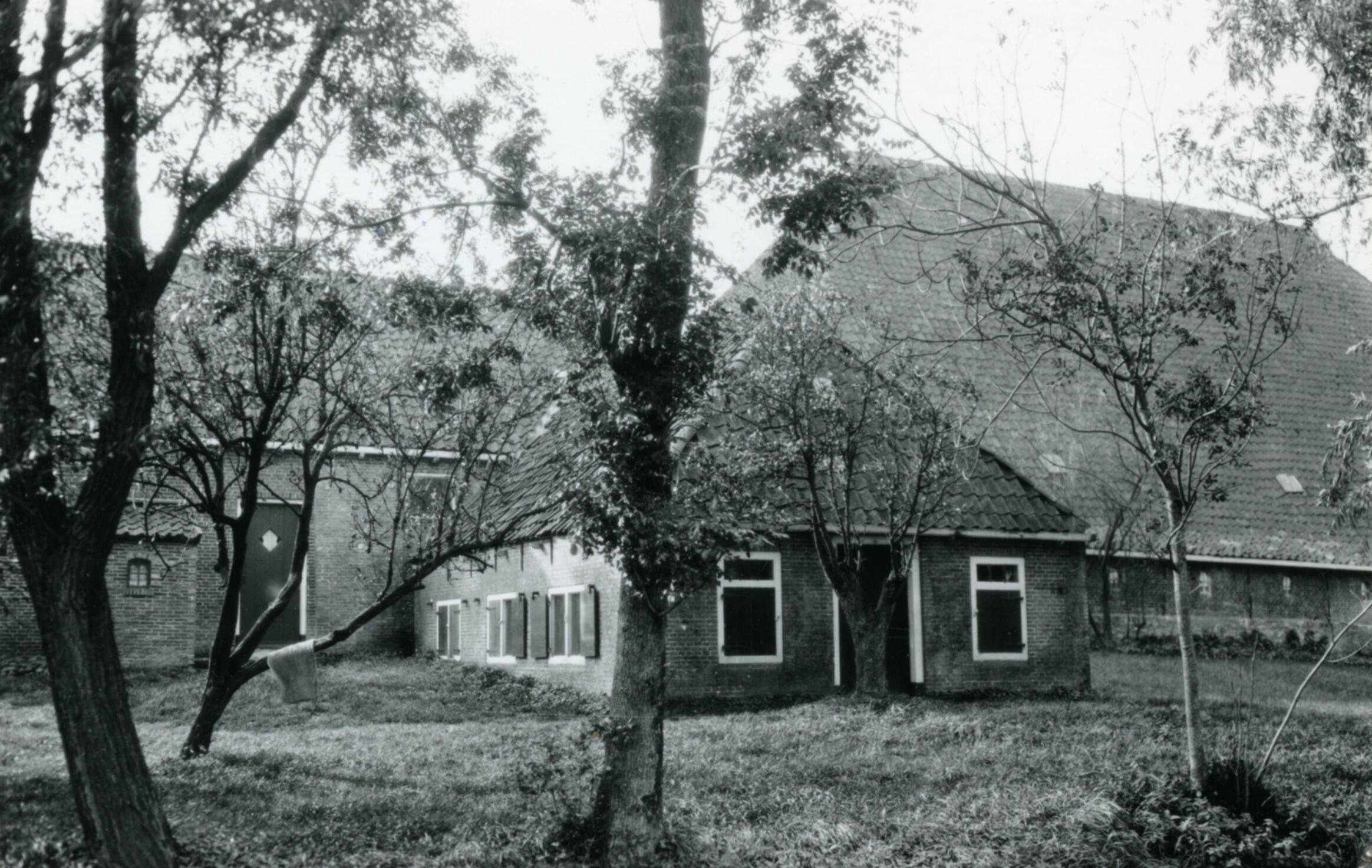 Dubbele boerderij, Landerum, 1935 (zwart-wit foto)