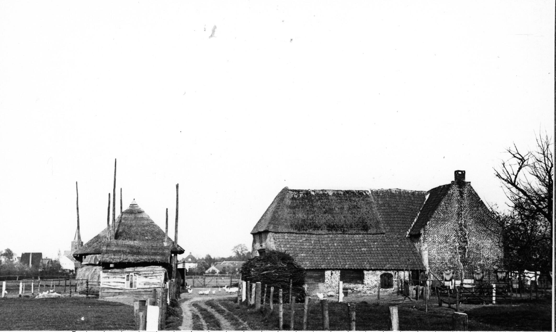 Boerderij en hooiberg, Wageningen, 1936 (zwart-wit n...