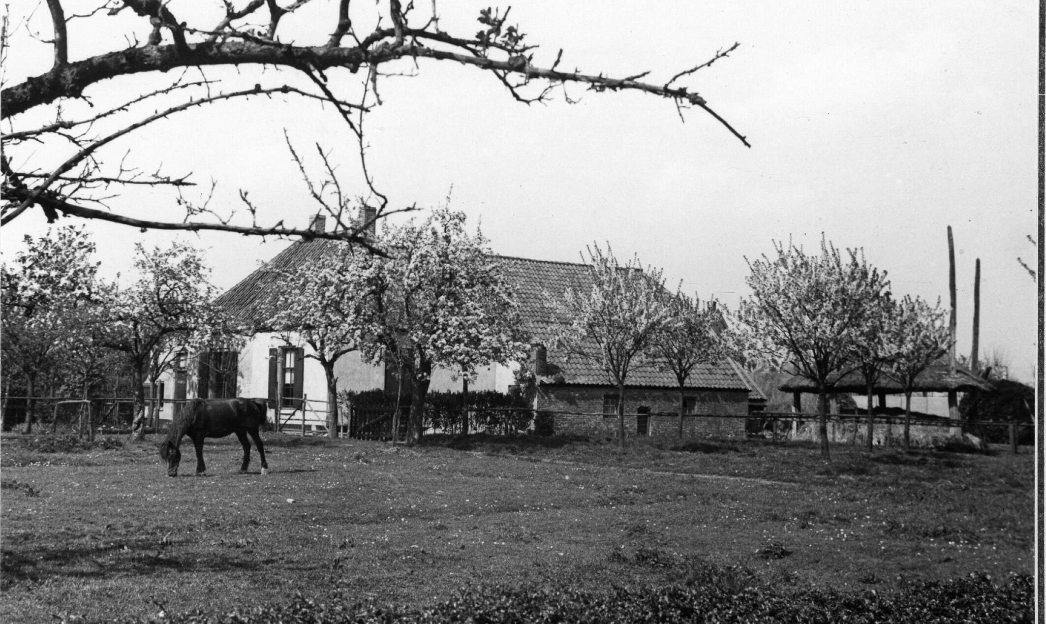 Boerderij en voortuin, Wageningen, 1936 (zwart-wit n...