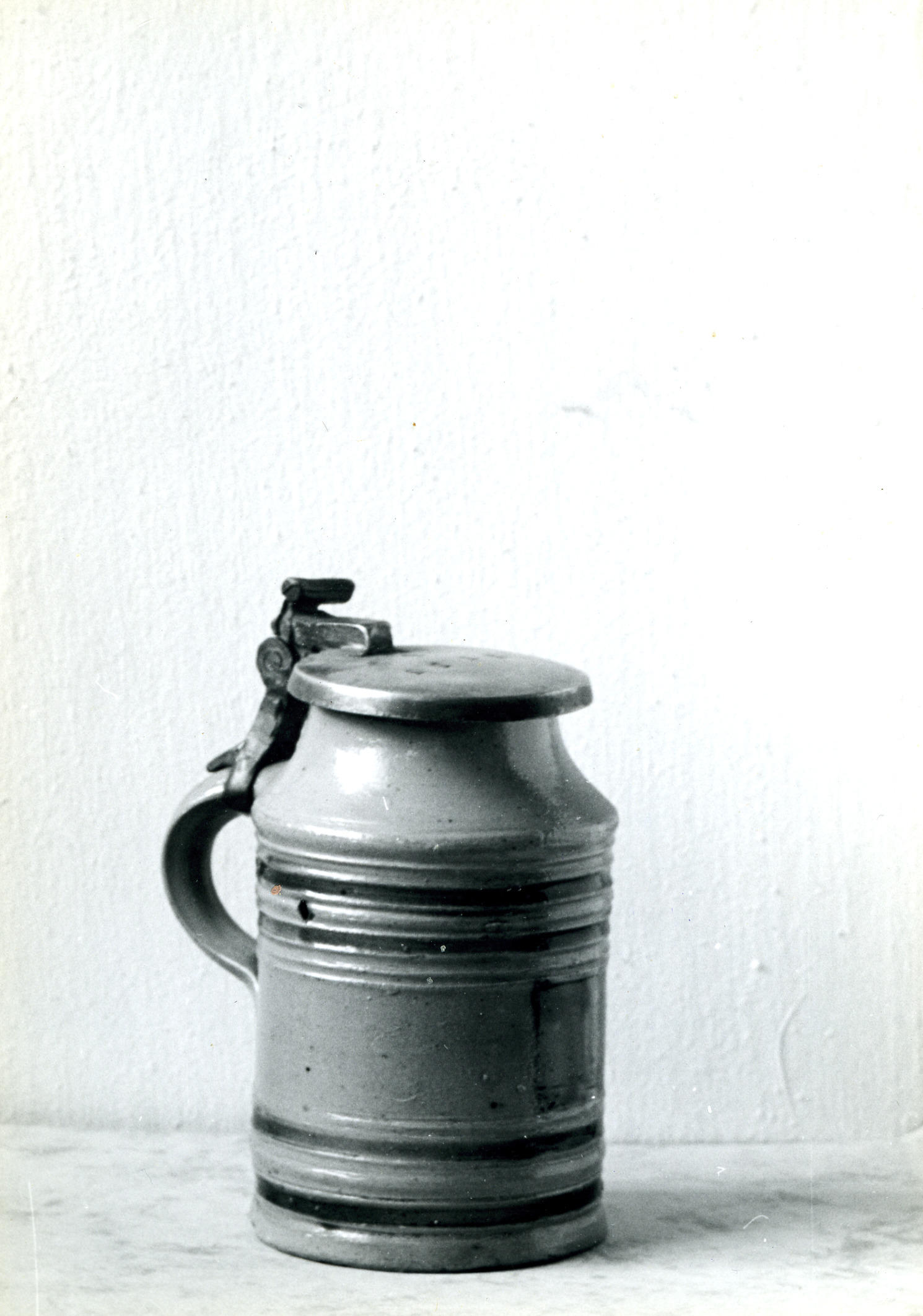 Tinnen zuigflesje, Oirschot, 1950 (zwart-wit foto)