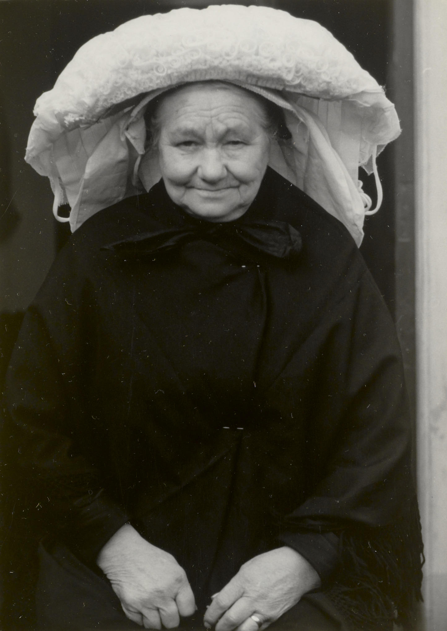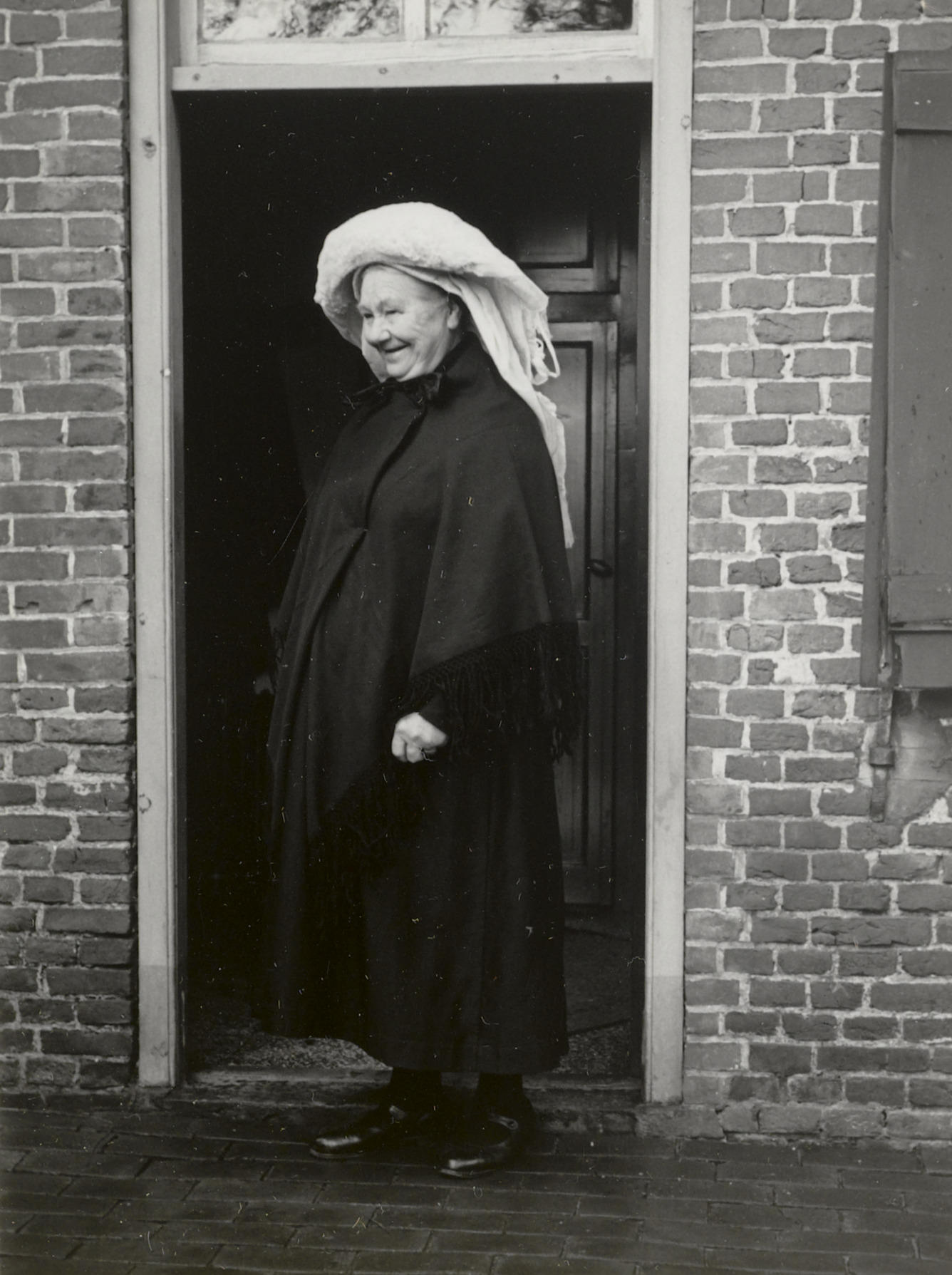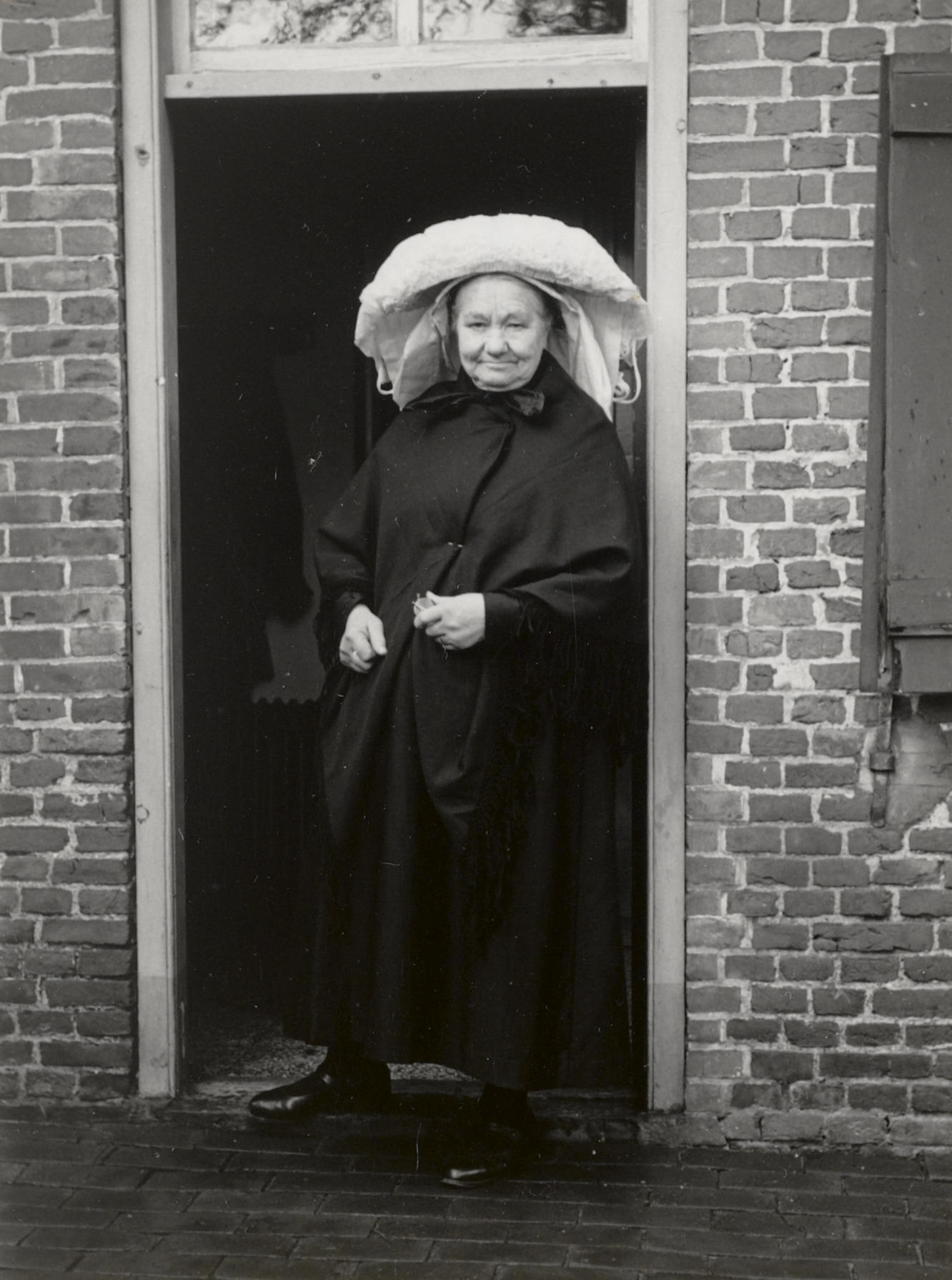 Vrouw uit Oirschot in rouwdracht, 1950 (zwart-wit foto)