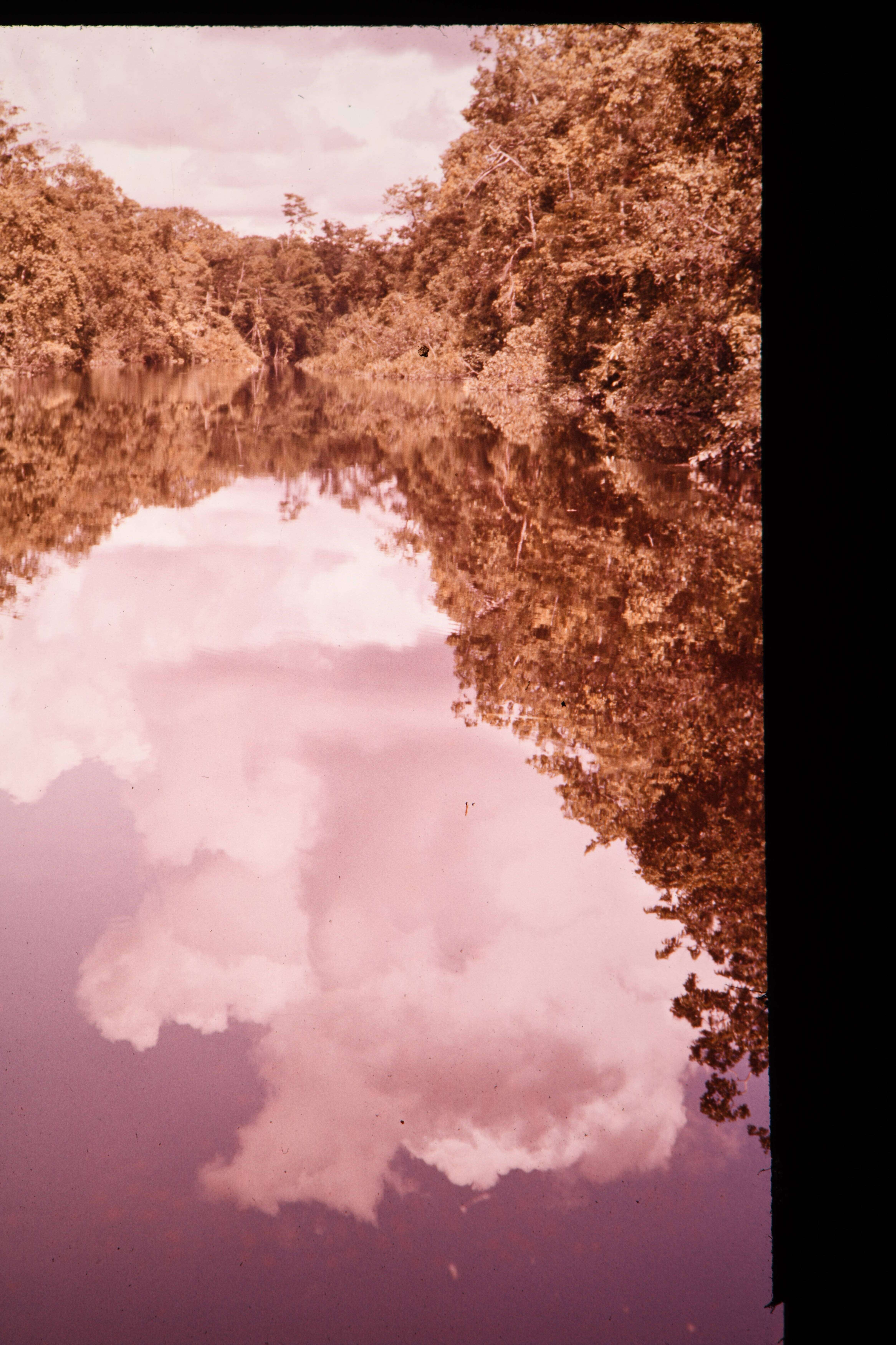 Riviergezicht staand / met hoge witte stapelwolk wee...
