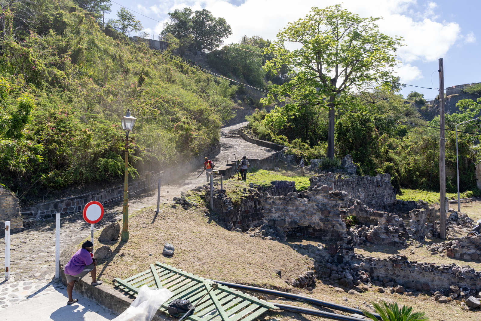 Gietijzeren waterpomp met daarnaast een herinnerings...