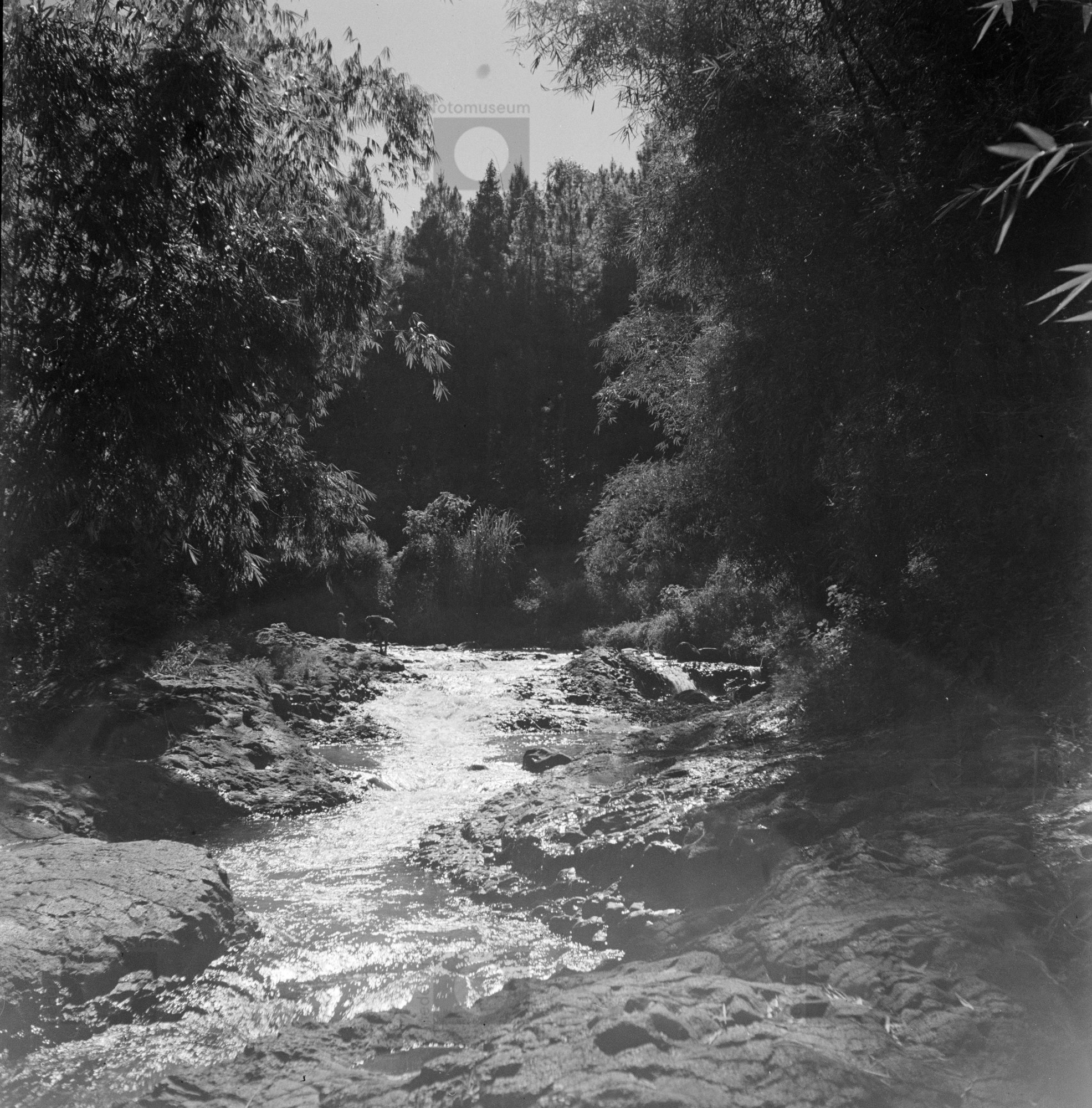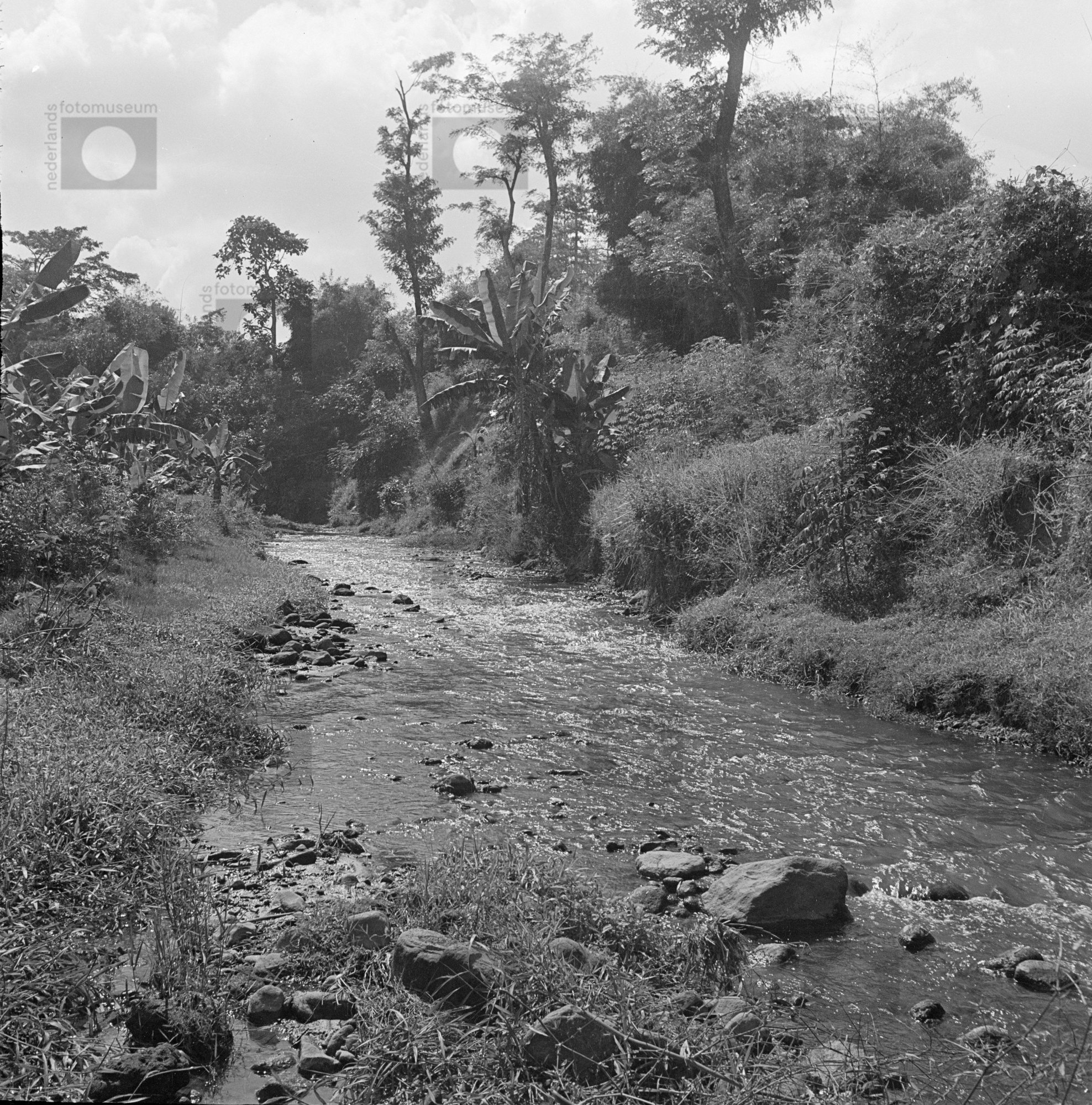 Kleine kali (beek) met pisangbomen, Indonesië (1949)