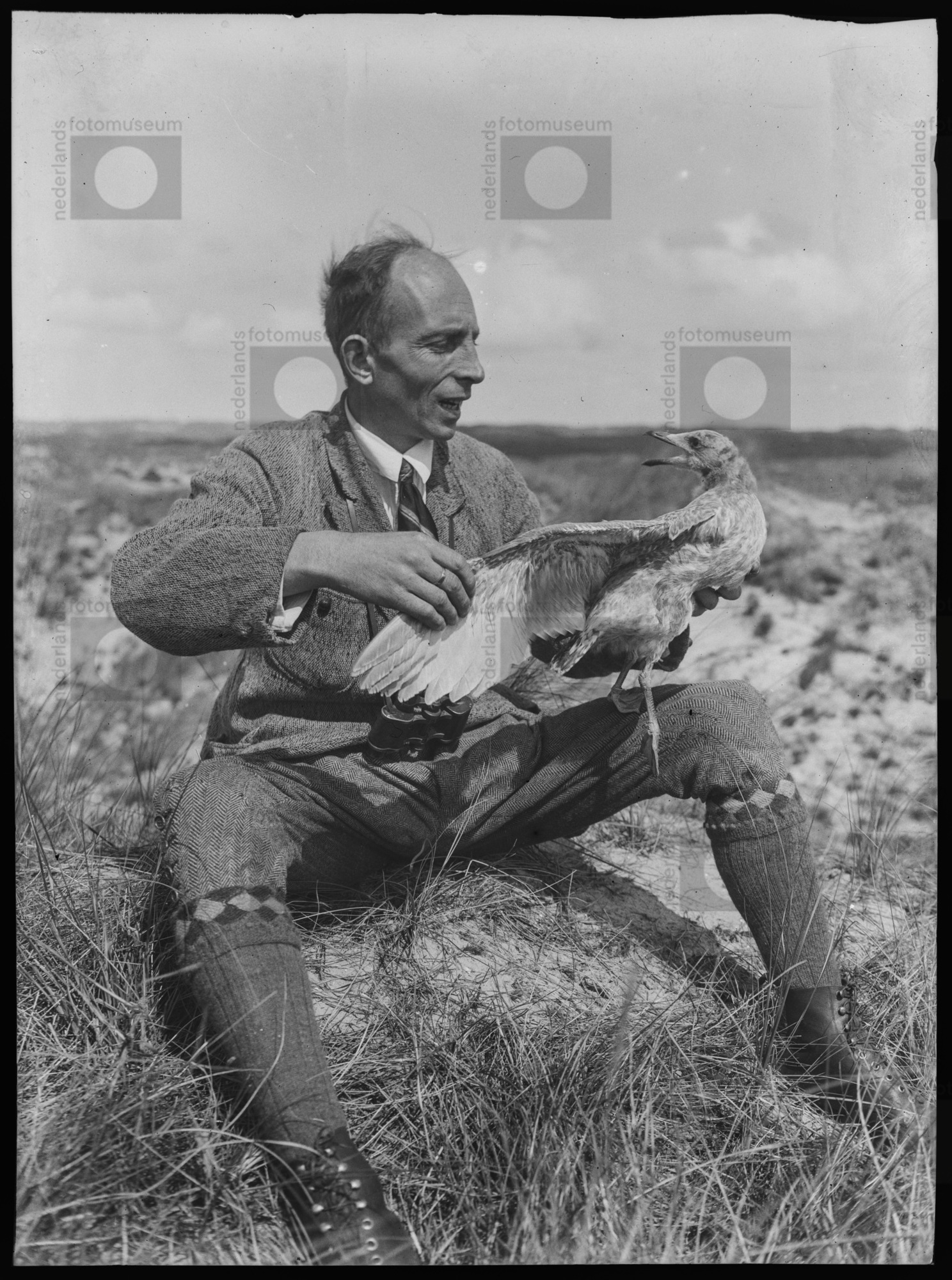 Jan P. Strijbos met jonge Zilvermeeuw, Bergerduinen ...