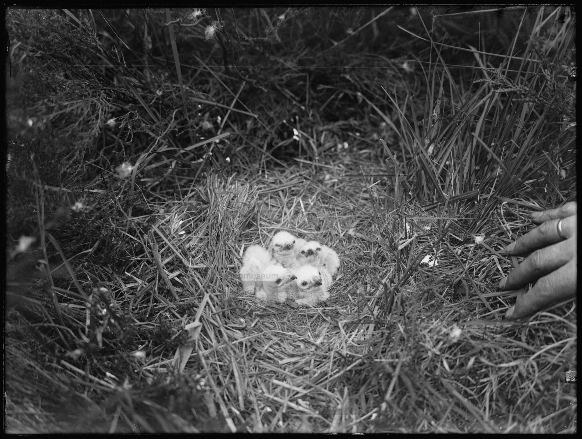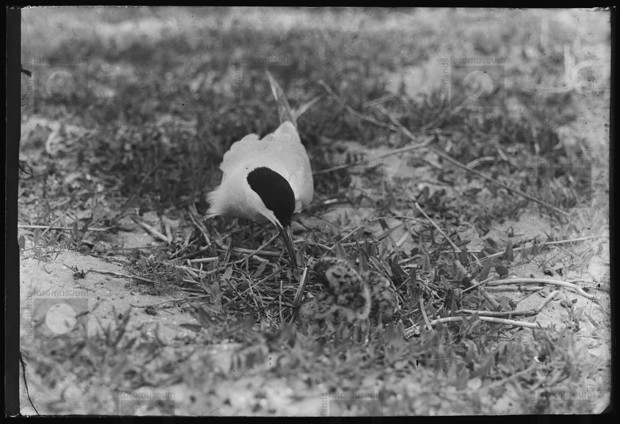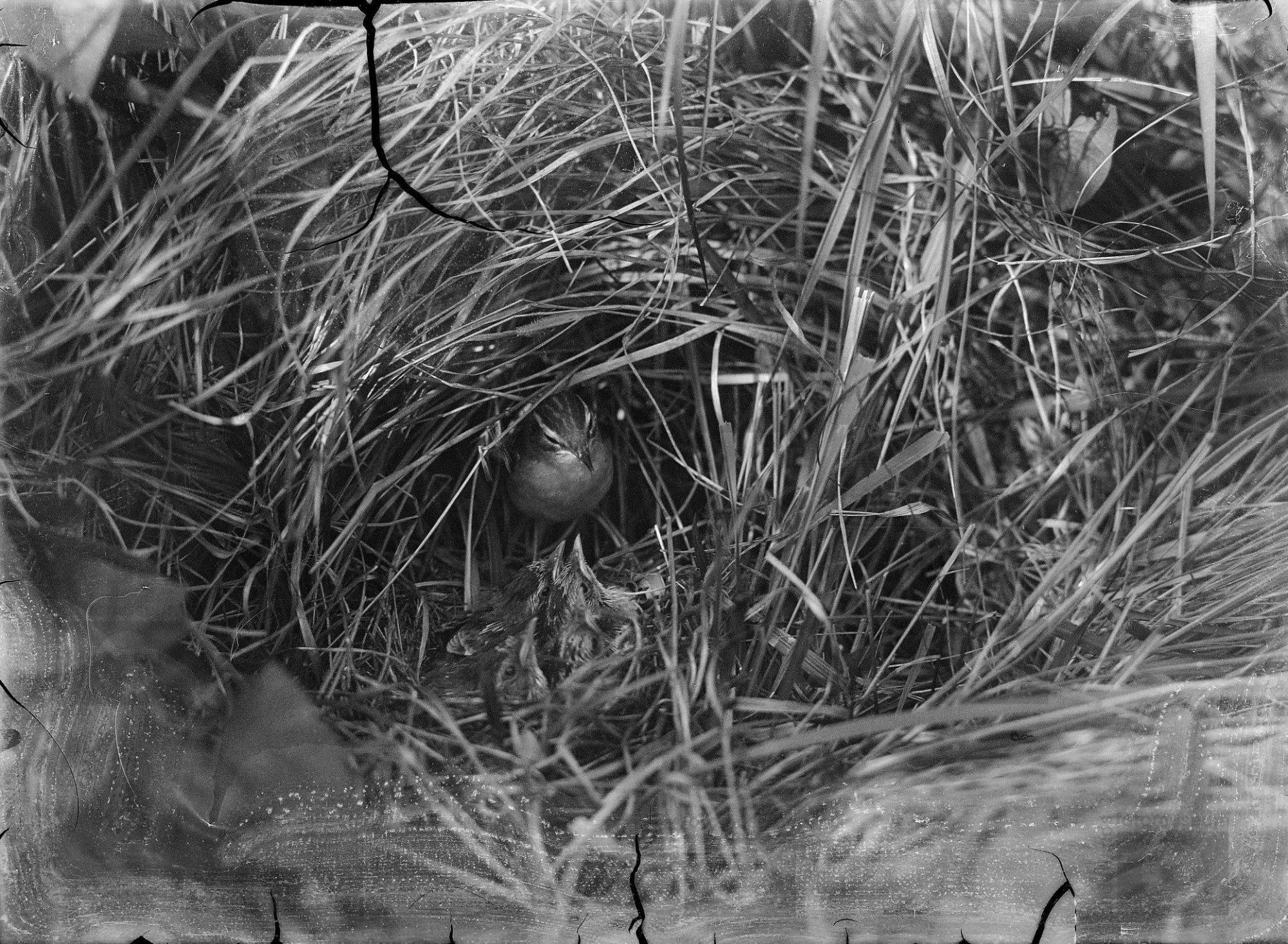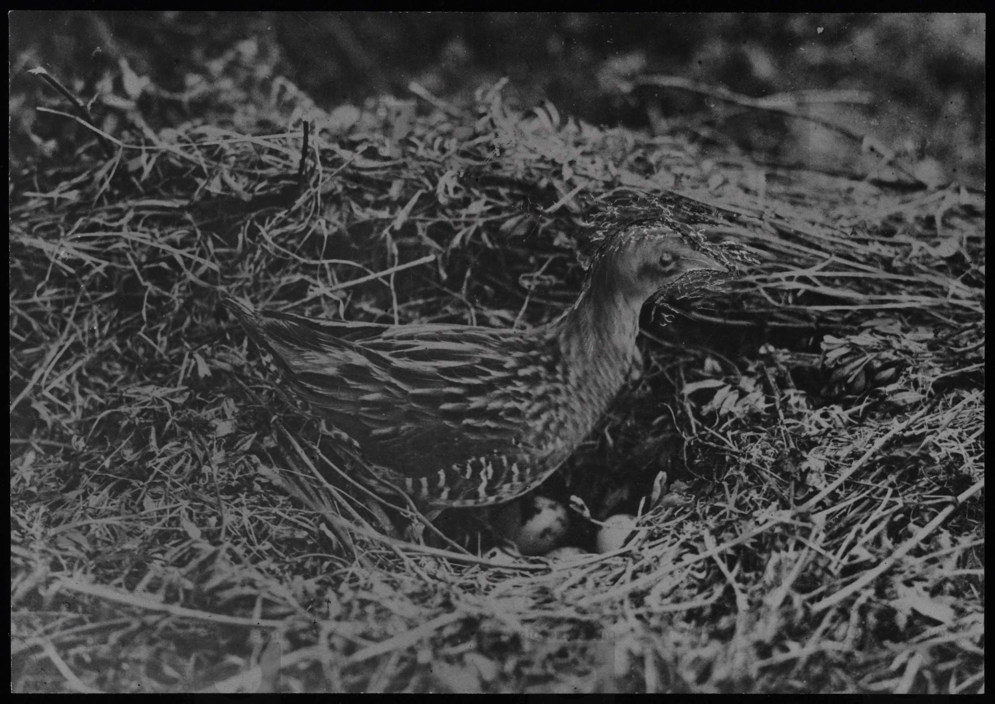 Kwartelkoning bij nest , z.pl. (1922) Foto J. Vijver...
