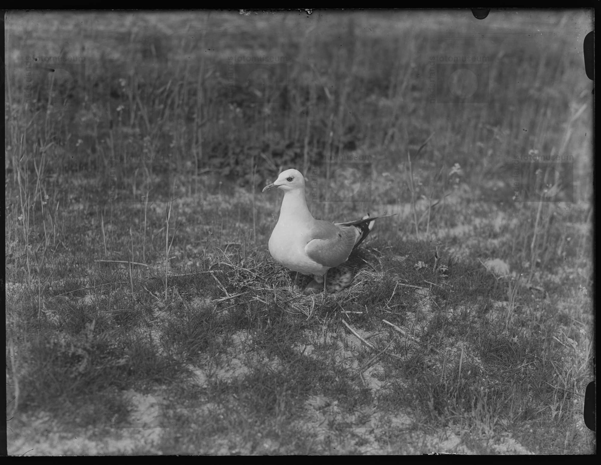 Stormmeeuw staande op nest, Geversduin (1949)