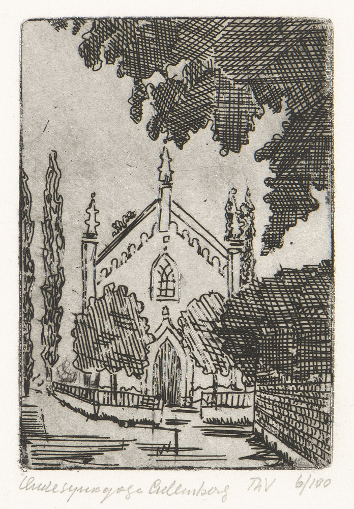 Ets, voorstellende de oude synagoge te Culemborg, ve...