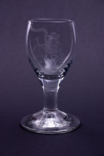 Wijnglas met een gegraveerd schild en initialen