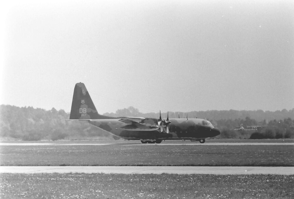 Lockheed C-130 Hercules USAFE DB-867 op de rolbaan.
