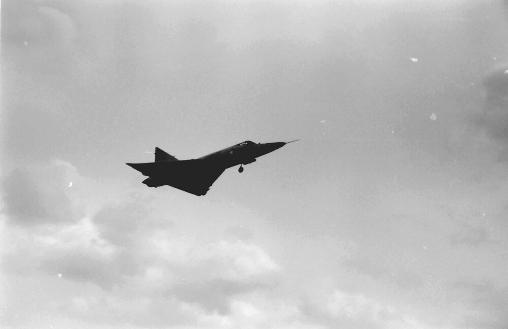 Convair F-102A Delta Dagger 32 FIS USAF in de landing.