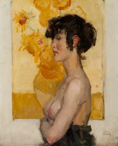 Vrouw in profiel, voor 'Zonnebloemen' van Van Gogh