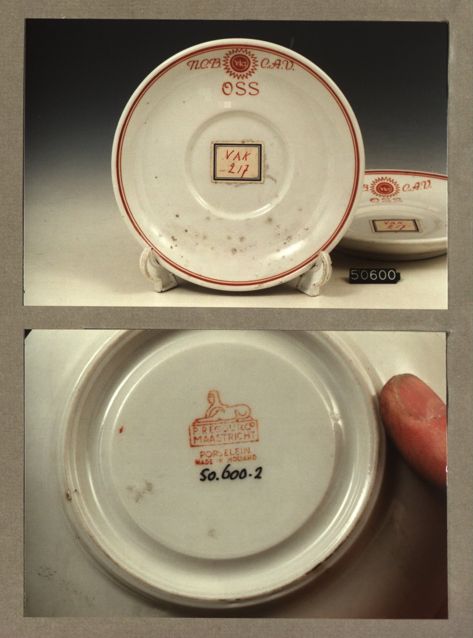 Schotel - diep, model P met decor N.C.B. C.A.V. Oss