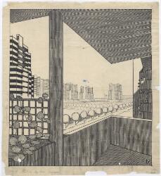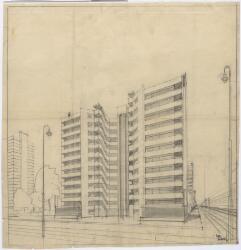 Lijntekening in Perspectief Hoogbouw Volkswoningen