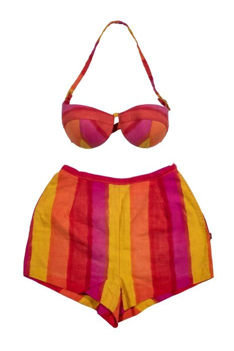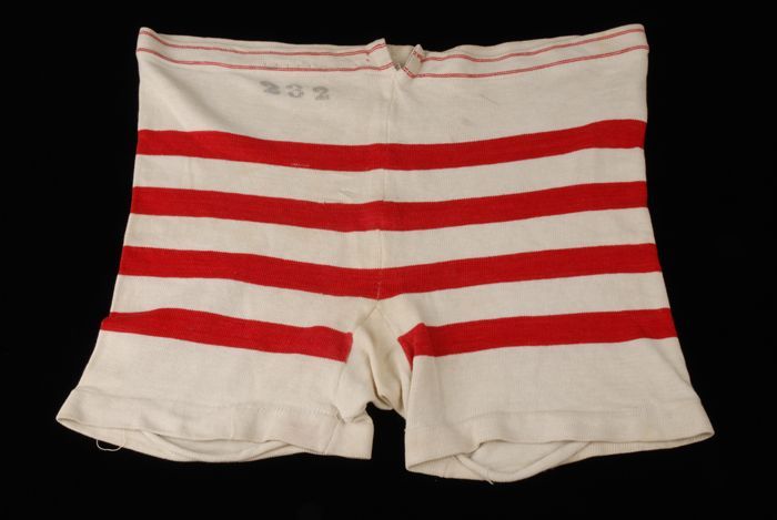 Zwembroek van rood-wit gestreept tricot katoen
