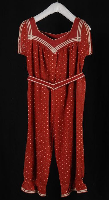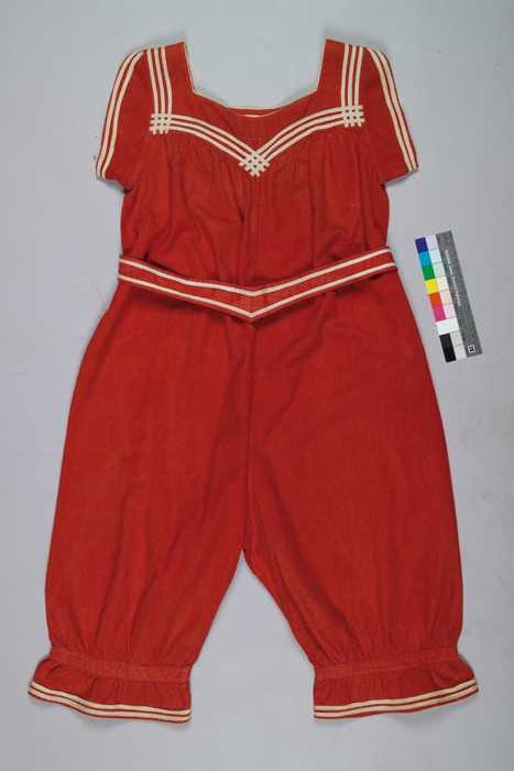 Badpak, wijd model met poffende pijpen van rode kepe...