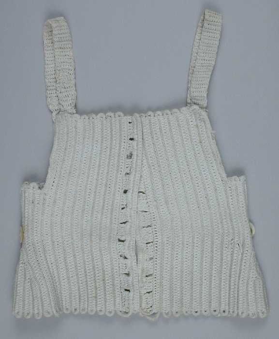 Kinderrijglijf van met wit katoen omhaakt koord
