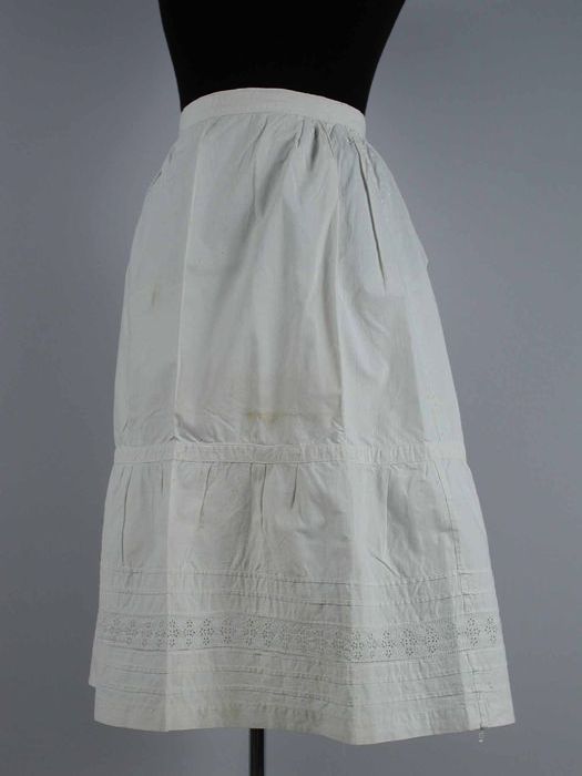 Onderrok van dik wit keperkatoen, vier panden aangep...
