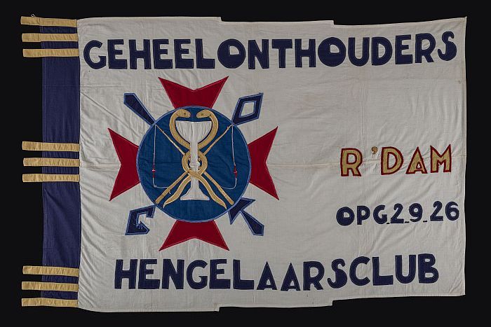 Witte katoenen vlag met applicaties, "geheelonthoude...