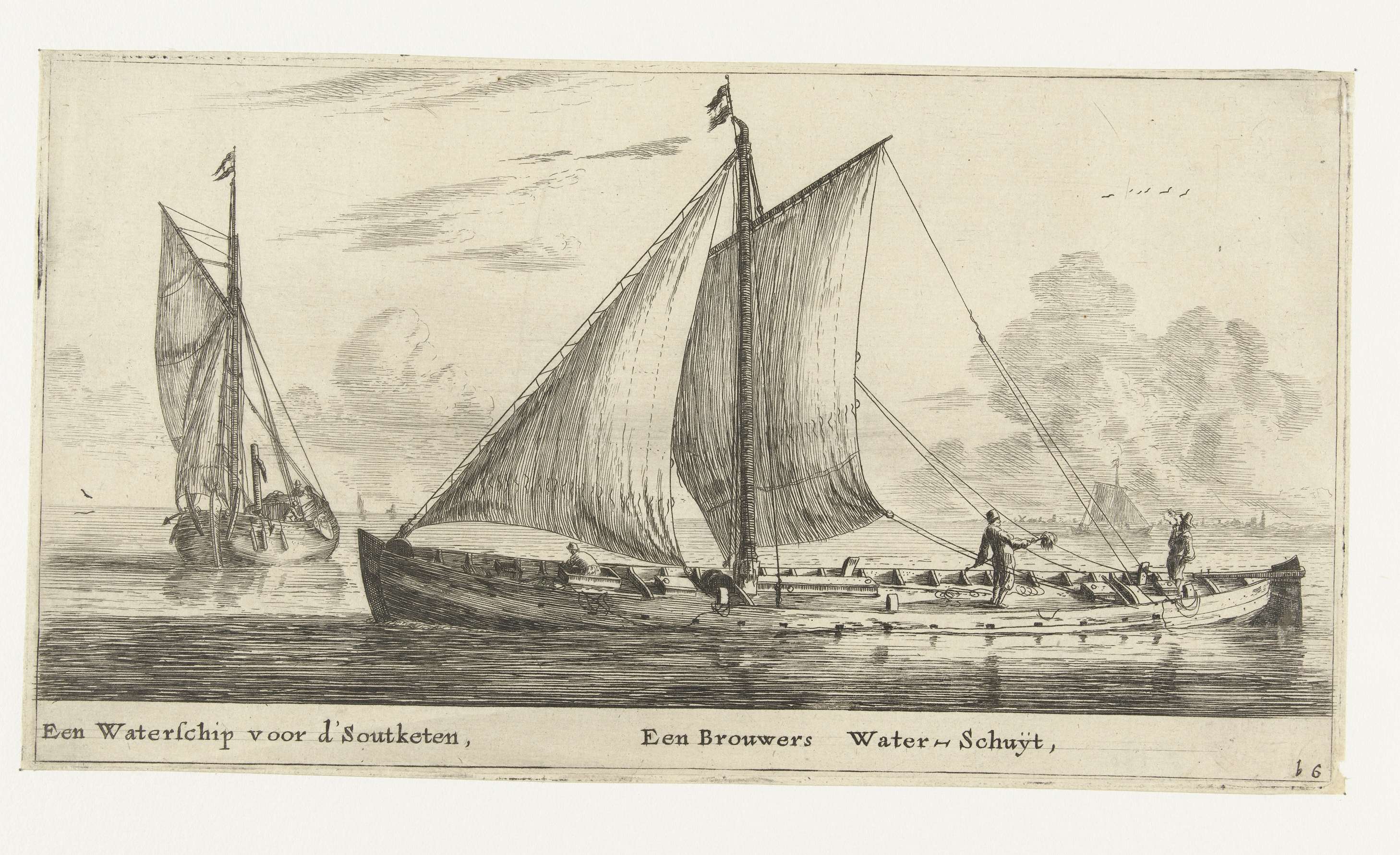 Twee schepen: een waterschip en een waterschuit