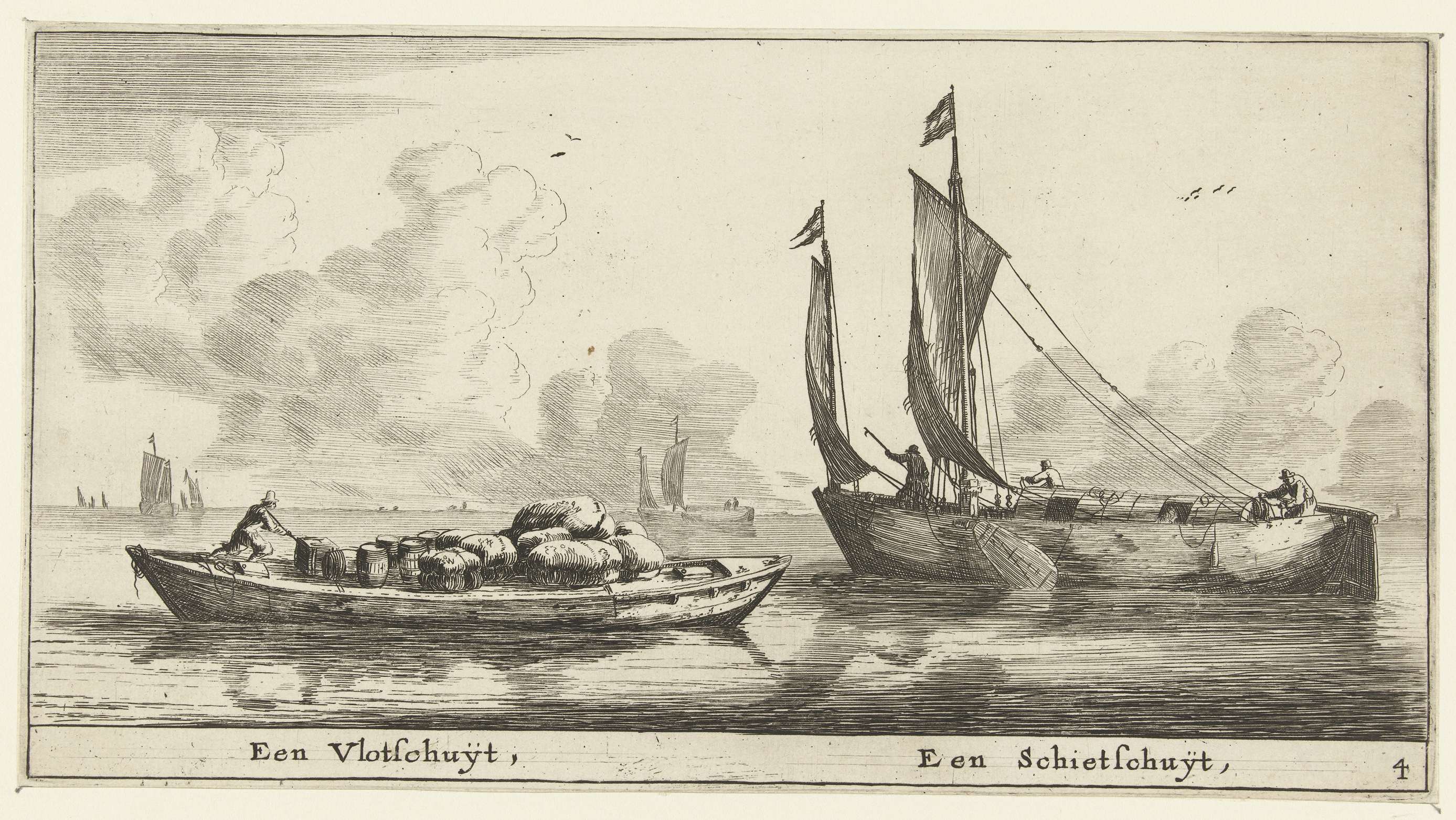 Twee schepen: een vlotschuit en een schietschuit