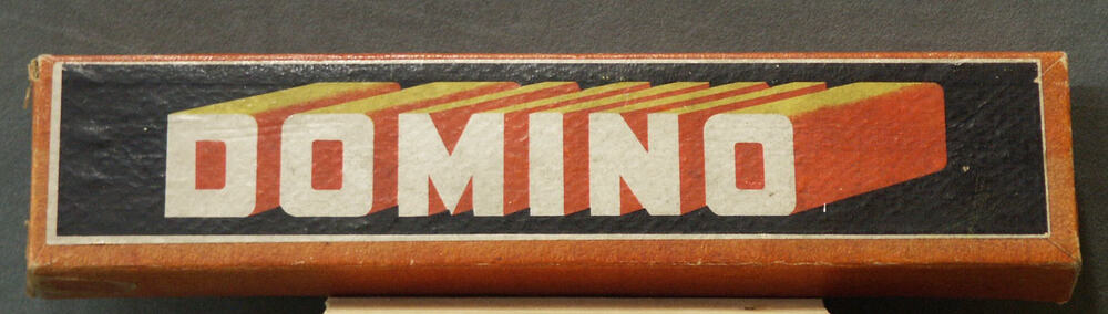 Dominostenen in kartonnen doos met opdruk in zwart, ...