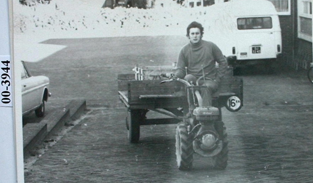 De heer van Geelen (tuinder) op weg naar de Veiling ...