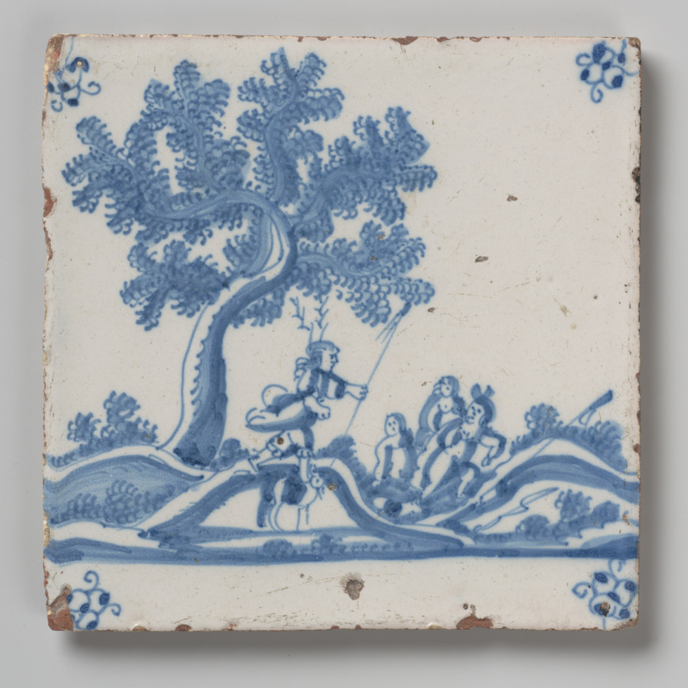 tegel van aardewerk met tinglazuur, voorstellende: A...