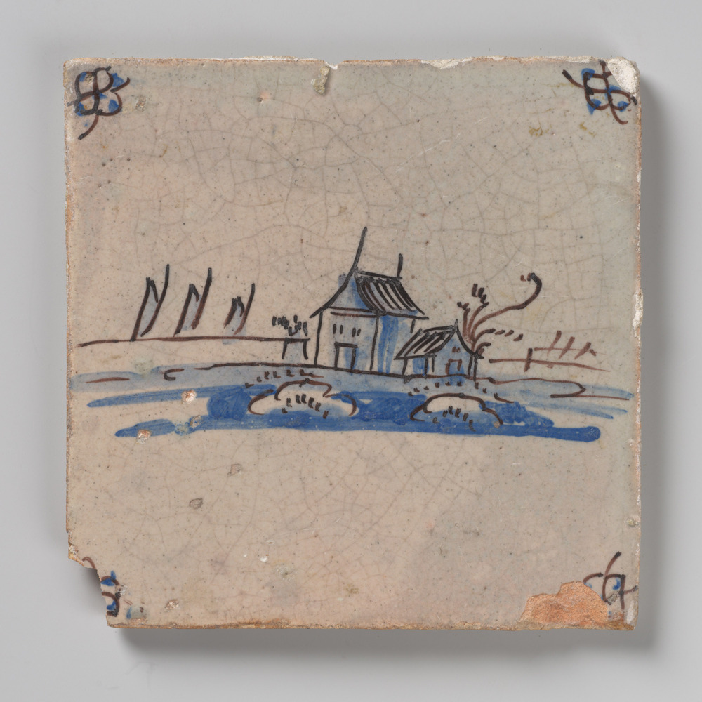 tegel van aardewerk met tinglazuur, voorstellende: l...