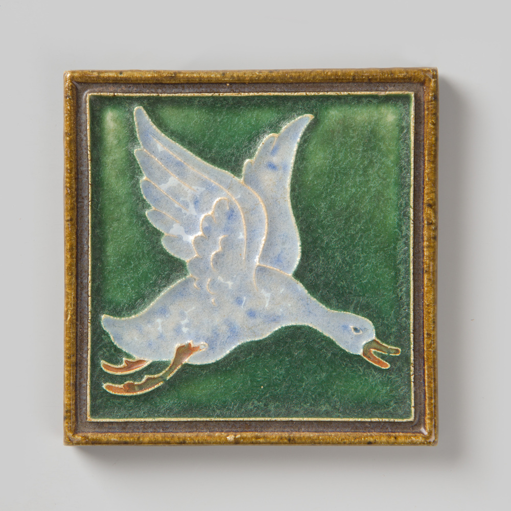 Tegel in cloisonné-techniek, met voorstelling: Vlieg...