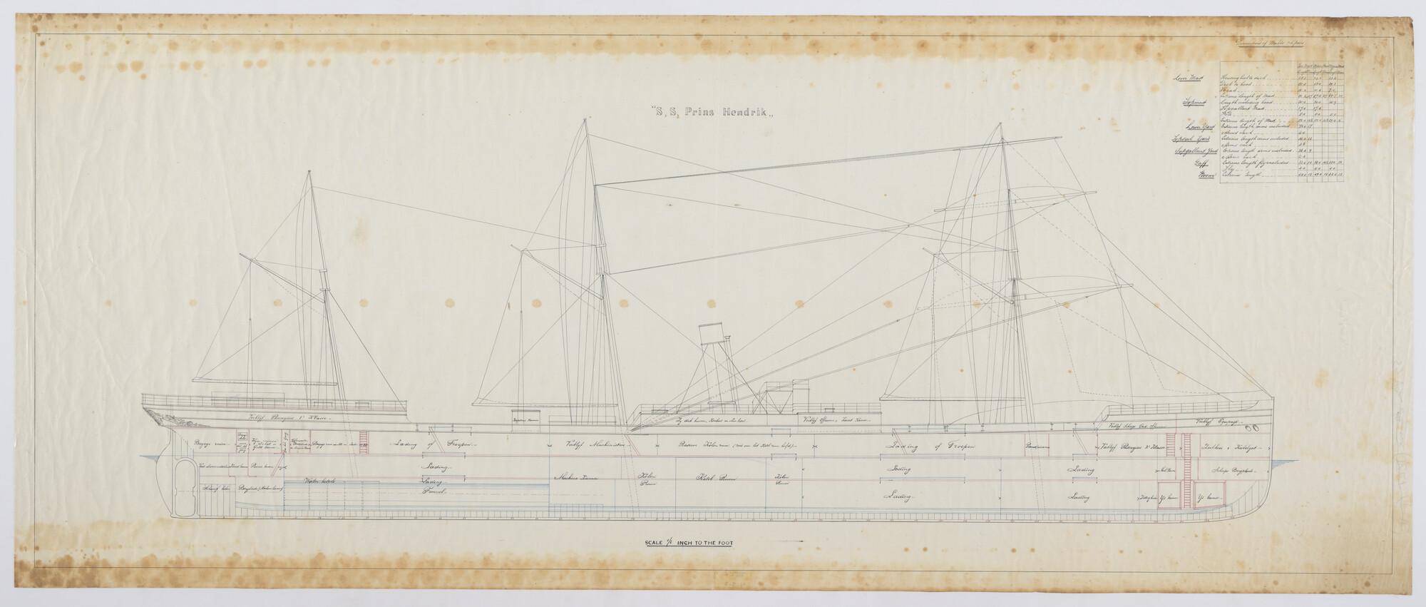 Zijaanzicht en tuigplan van het vracht-passagierssch...