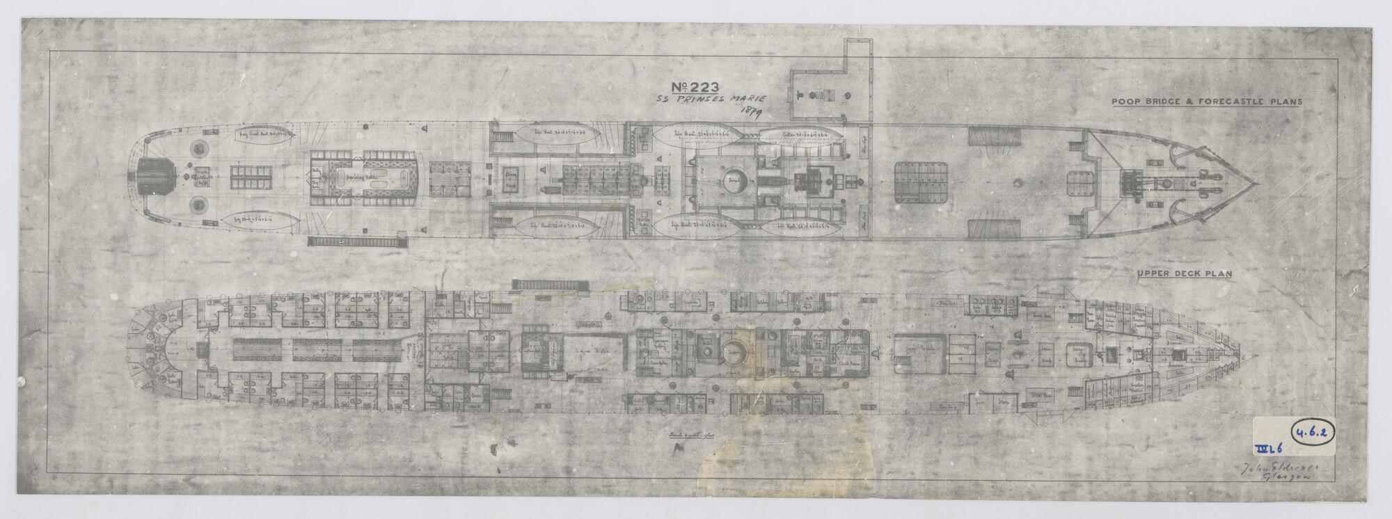 Kampanje-, brugdek, bak- en bovendek van het passagi...