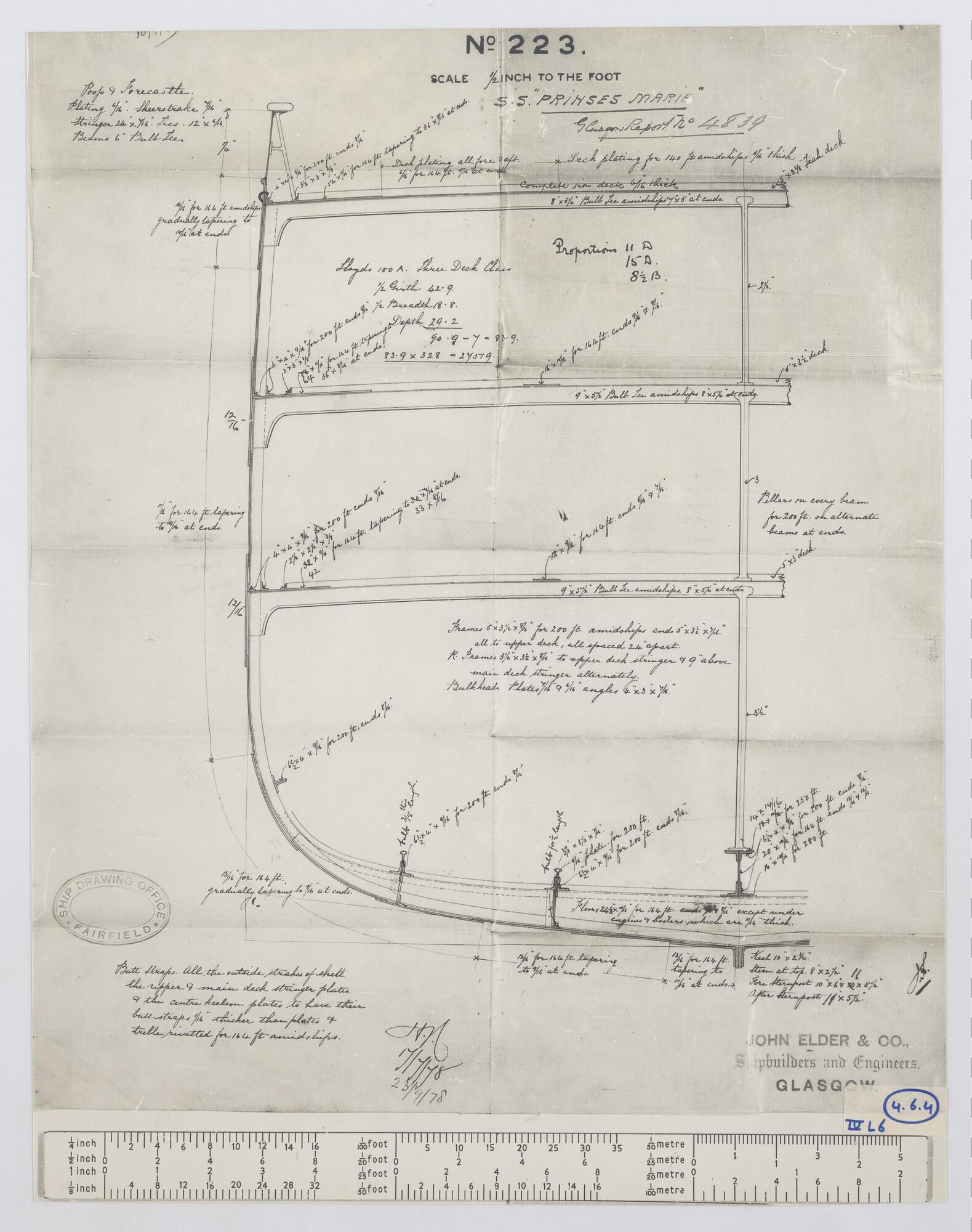 Lijnenplan van het passagiersschip ss. Prinses Marie...