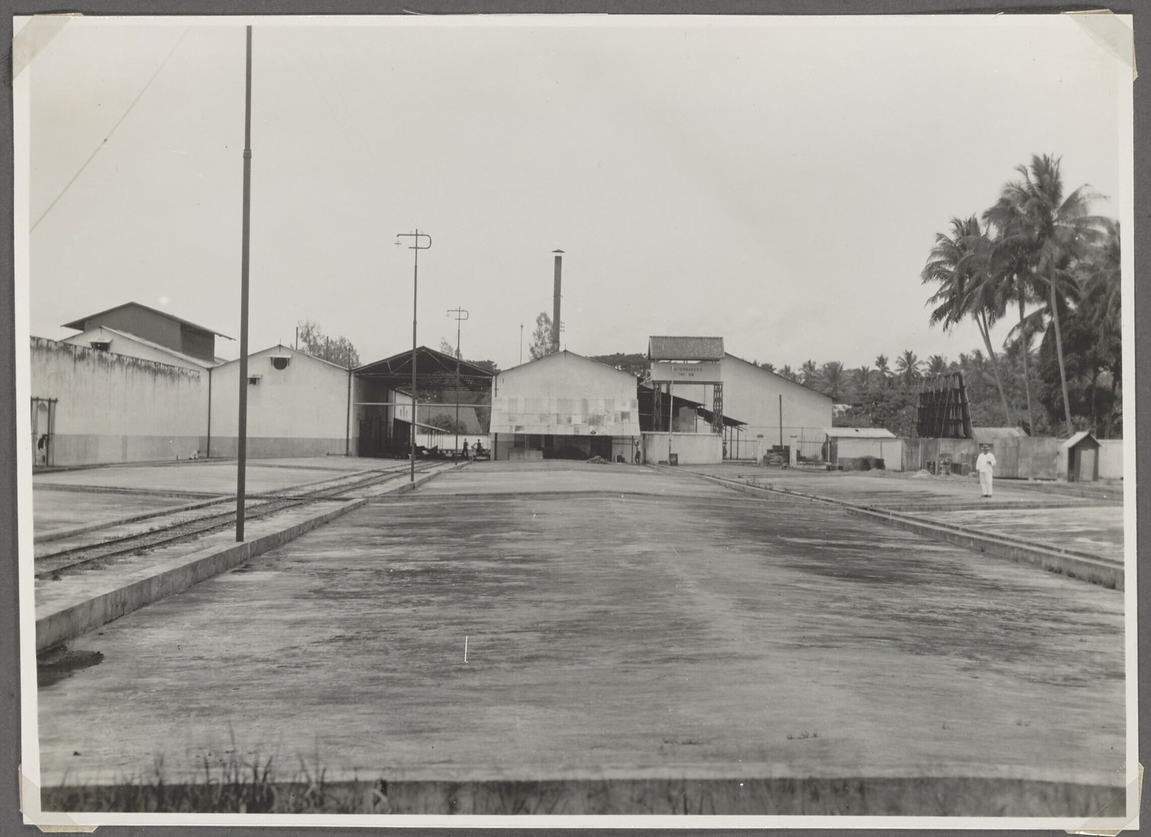 De spiritusfabriek 'Paboearan' met de employ-?woning...