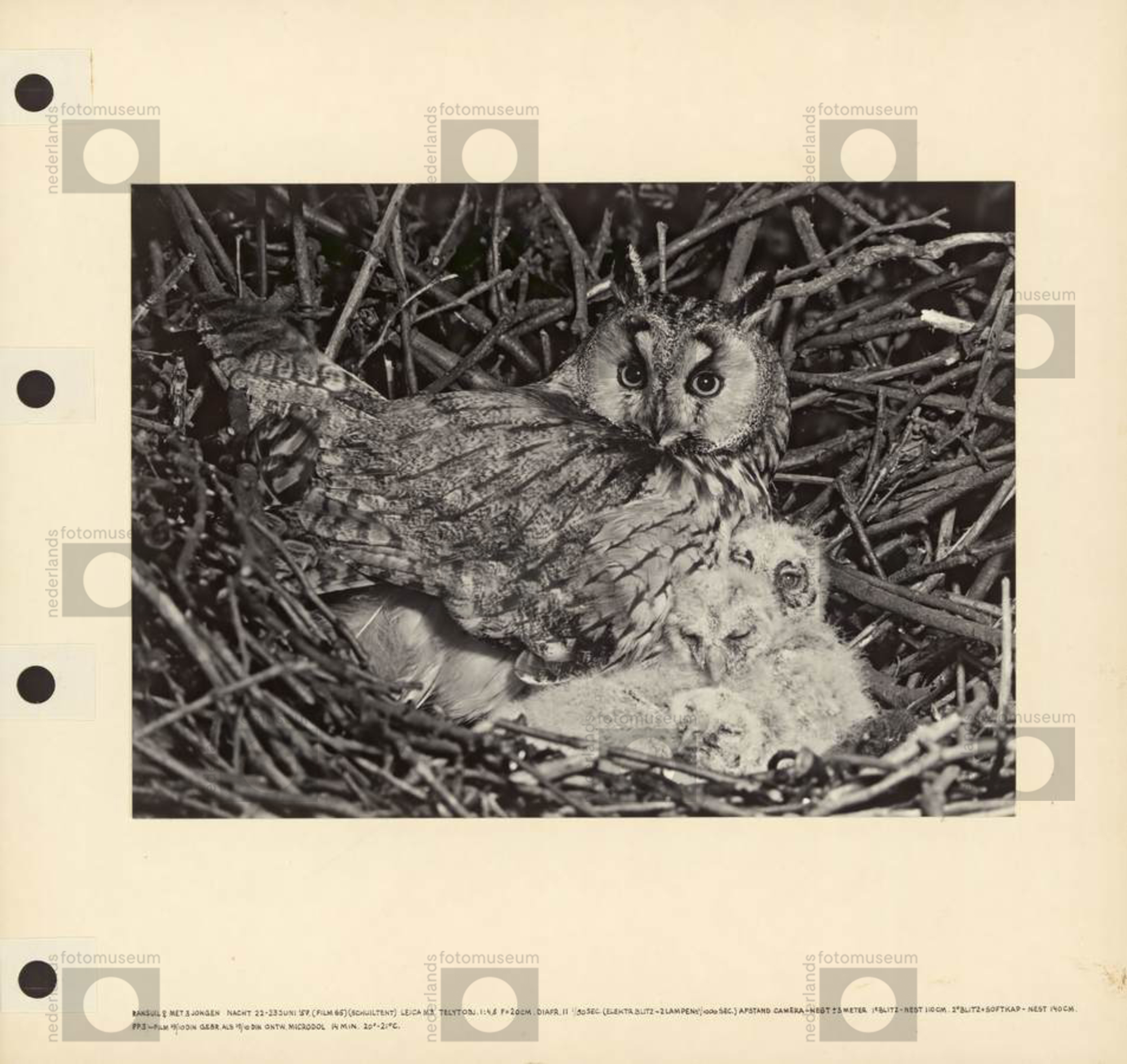 Jonge Nachtzwaluwen met oudervogel in nest, Bentveld...