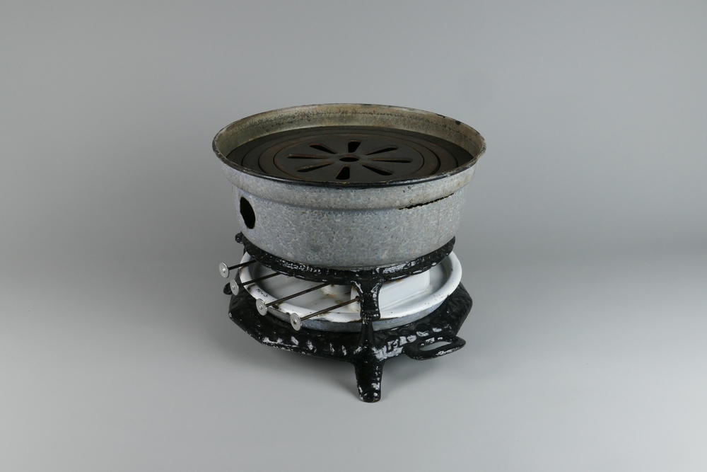 petroleumstel van grijs gewolkt emaille, circa 1900