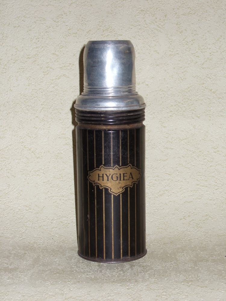 thermosfles van aluminium en blik, zwart en goudkleu...