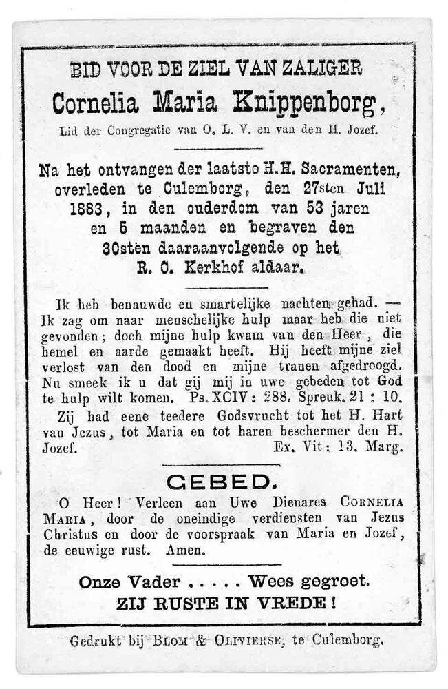 bidprent voor Cornelia Maria Knippenborg. Geboren 18...