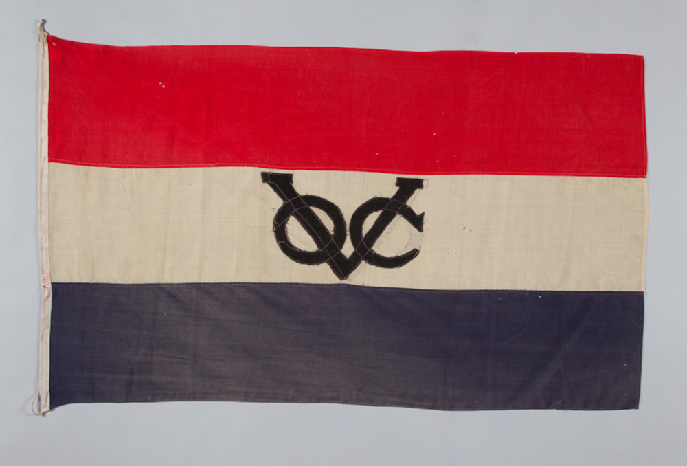 Vlag van wol in de nederlandse driekleur met applica...