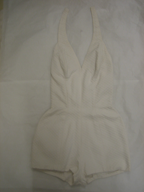 Strandpakje van wit piquéweefsel, haltermodel met di...